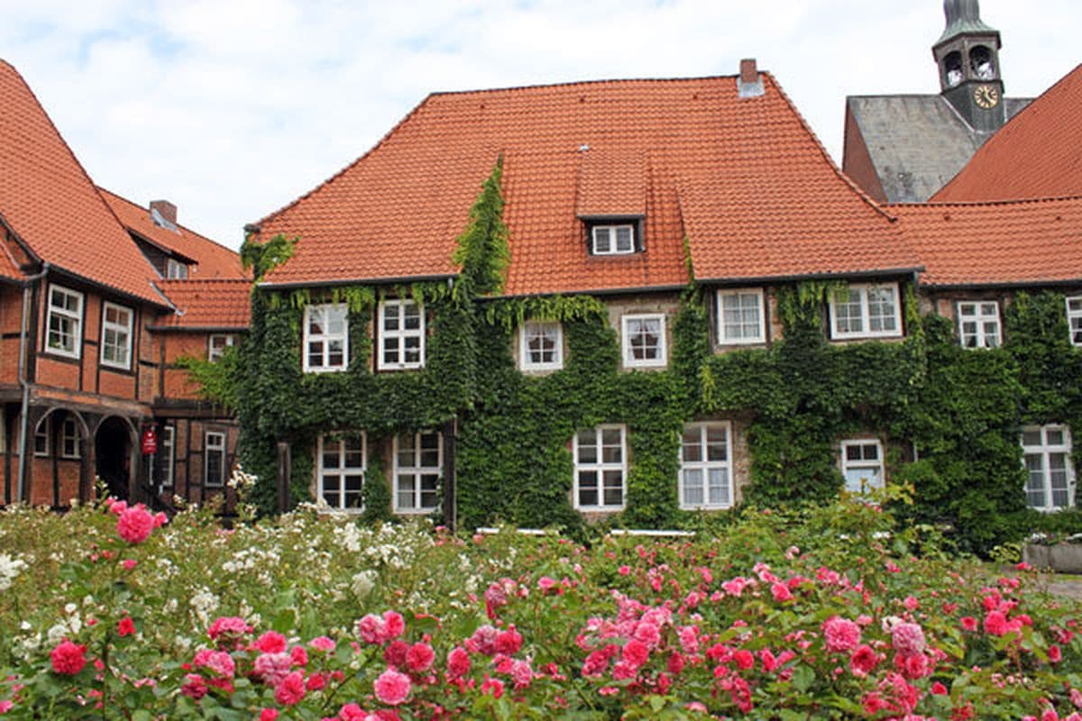 Man fühlt sich tatsächlich wie in einer anderen Welt, wenn man das Kloster Lüne betritt. Durch einen unscheinbaren Eingang gelangt man in einen Gang und findet sich plötzlich in einem Hof wieder, der einer Märchenerzählung entsprungen sein könnte. Blühende Rosen und sattes Efeu bilden einen reizvollen Kontrast zu den roten Backsteinen und dem traditionellen Fachwerk der Klostergebäude.