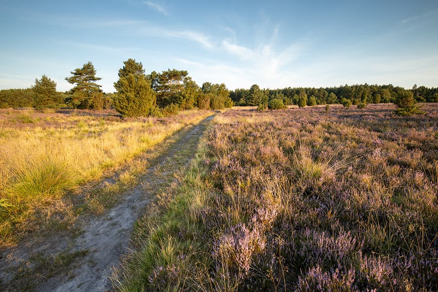 Die Rehrhofer Heide ist von Wäldern umgeben und hat eine leicht gewölbte Form. Gerade im Sommer kann man hier sehr lange die Sonne genießen und zum Sonnenuntergang noch eine schöne Wanderung durch das Heidekraut unternehmen.