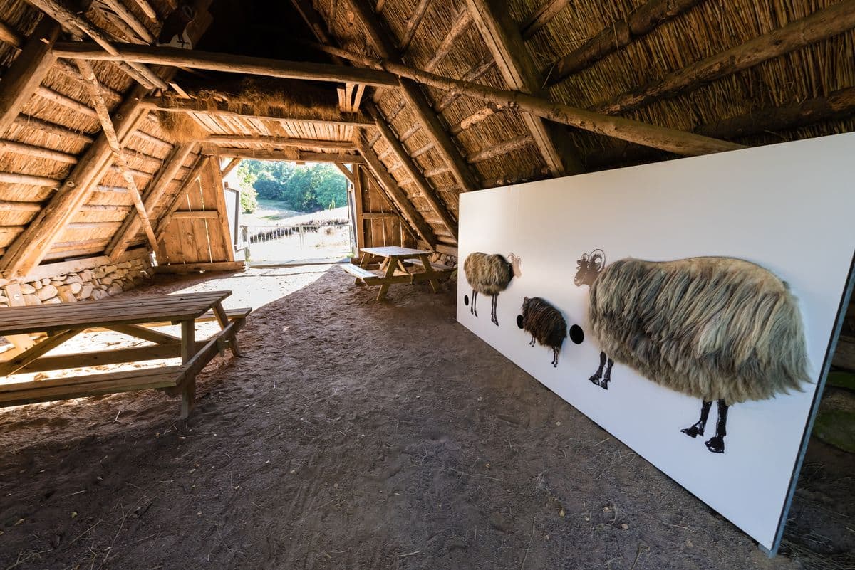 Ein Mischwald zeigt die natürliche Vegetation vor der Entstehung der großen Heideflächen. Die angrenzende Heide mit einem Außenschafstall spiegelt das Landschaftsbild wider, wie es seit dem Mittelalter für die Lüneburger Heide charakteristisch ist.