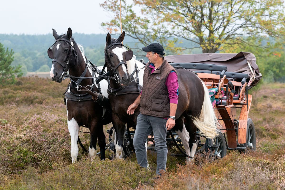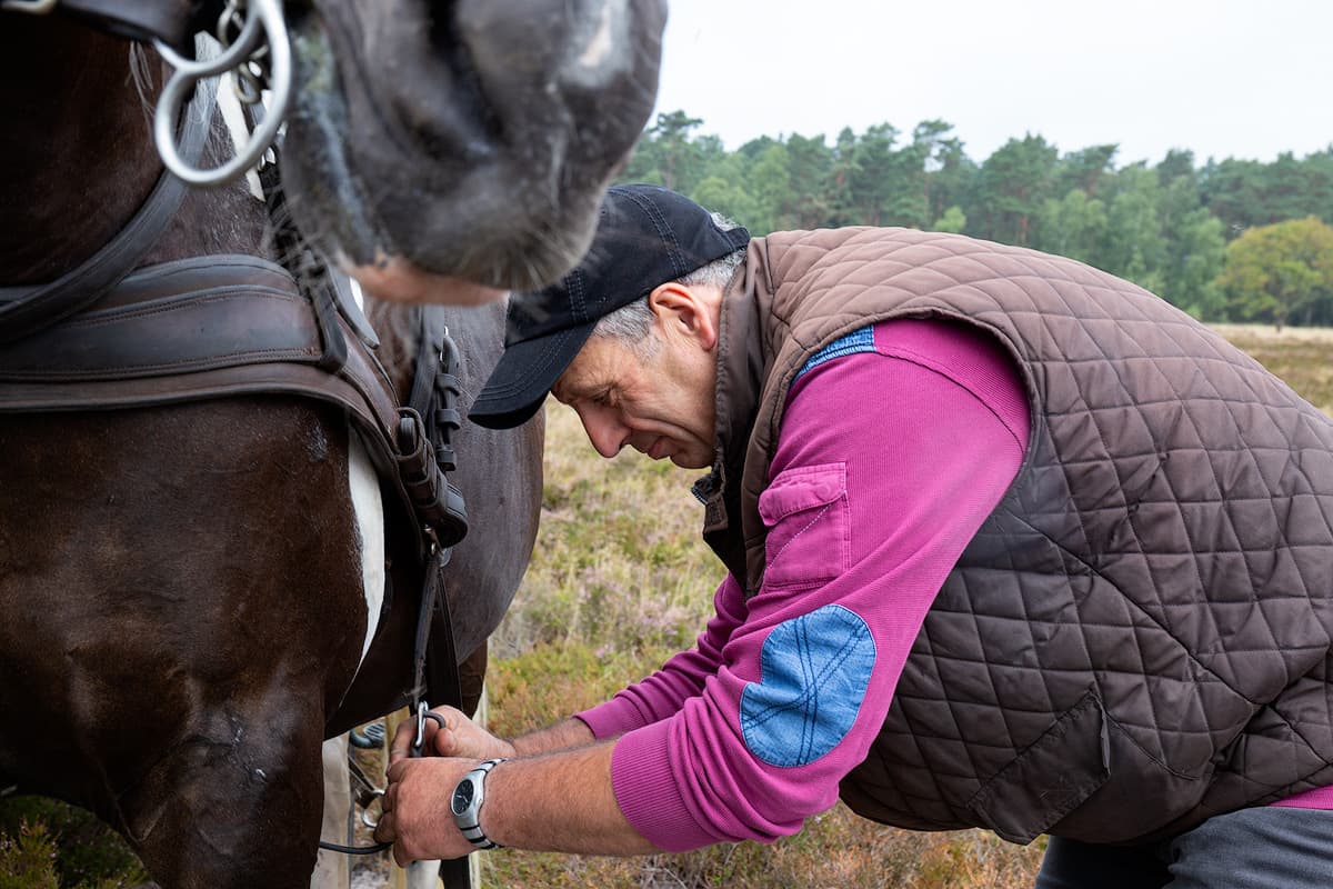 In Insiderkreisen wird Kutscher Heins als heimlicher Pferdeflüsterer bezeichnet und ab und an kommen sogenannte Problemfälle auf seinen Hof, bei denen der ein oder andere Kutscher bereits die Flinte ins Korn geworfen hat. Heins kann einfach gut mit Pferden umgehen, hat die nötige Ruhe eines Heidjers und am Ende klappt es meistens wieder mit den jungen Wilden. So auch mit Bella und Blanka, den polnisch-deutschsprachigen Zugtieren von ebay. Das Lenken der beiden Damen ist im übrigen Chefsache. Und am Ende rollt die Kutsche wieder in Richtung autofreies Naturschutzgebiet.
