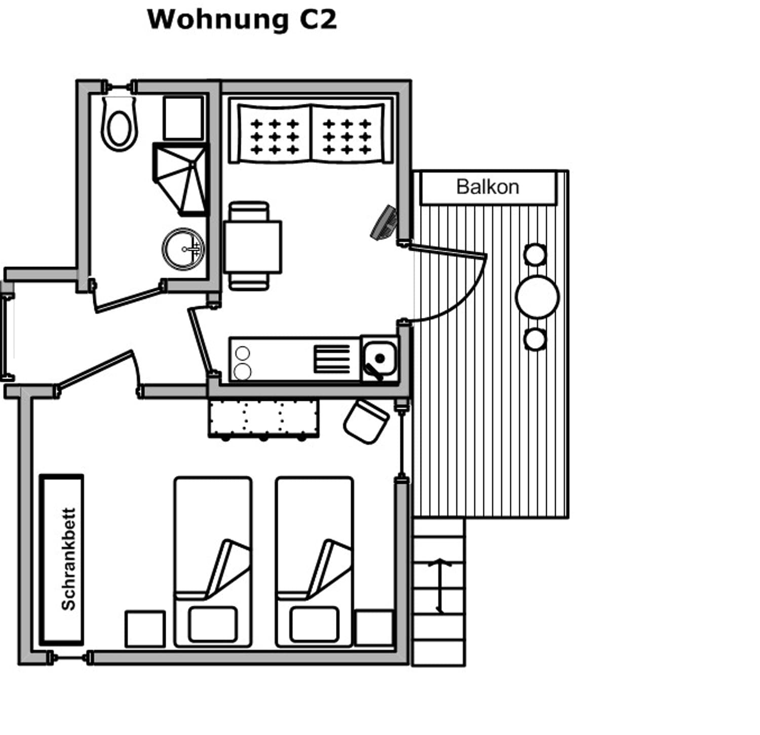 Das Ferienhaus im Christianiweg besteht aus den 3 Wohnungen C1, C2 und C3.