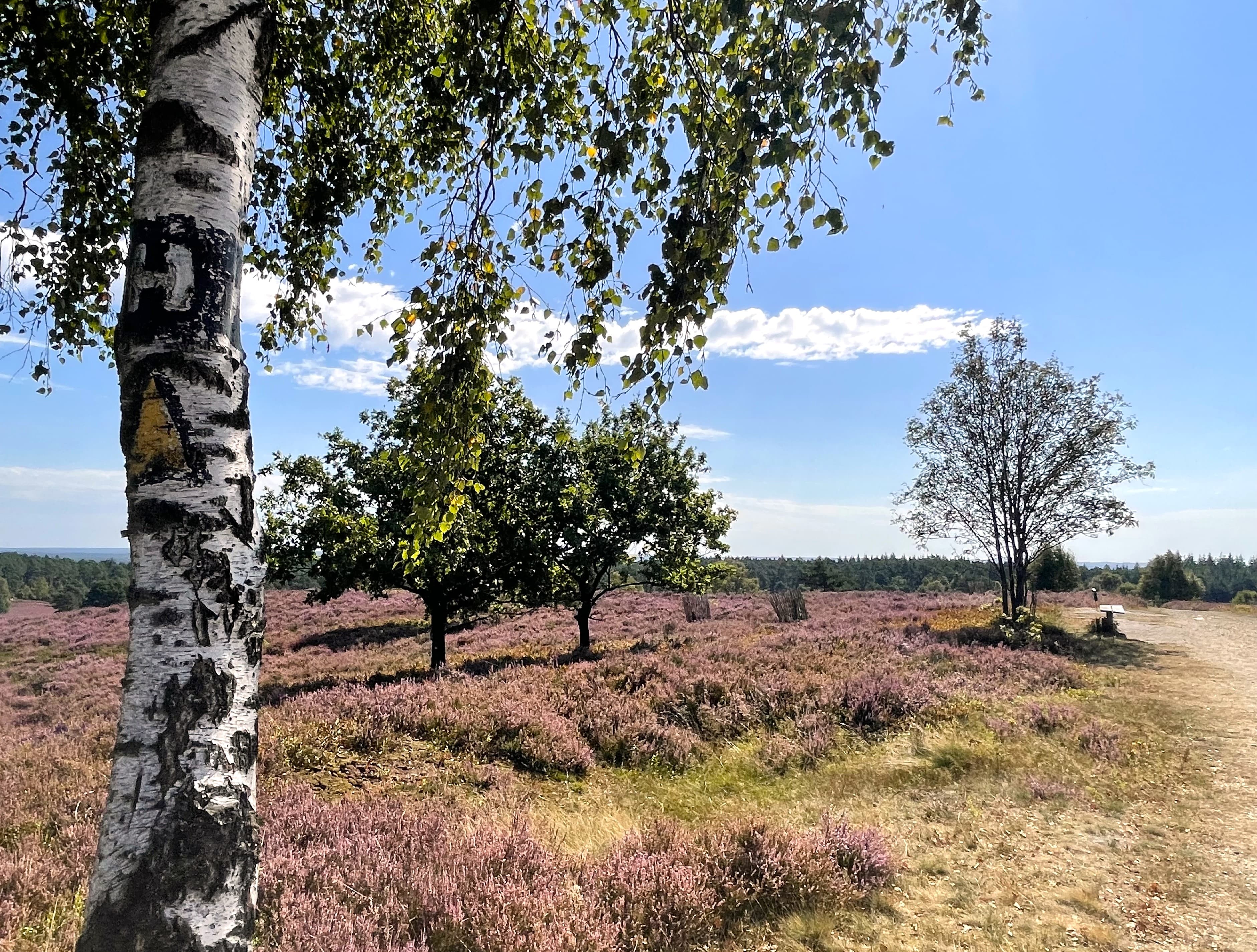- Der Wacholderwald Schmarbeck bei Müden-Örtze – zwischen Wacholderbüschen und Wanderwegen zeigt sich die Heide mit bis zu 80 % Blüte noch einmal von ihrer schönsten Seite.