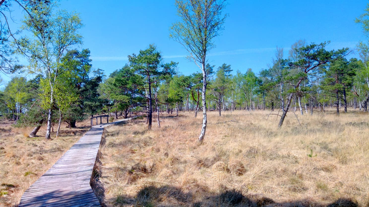 - Weg durch das Moor erfolgt über einen Steg oder über Wald- und Sandboden