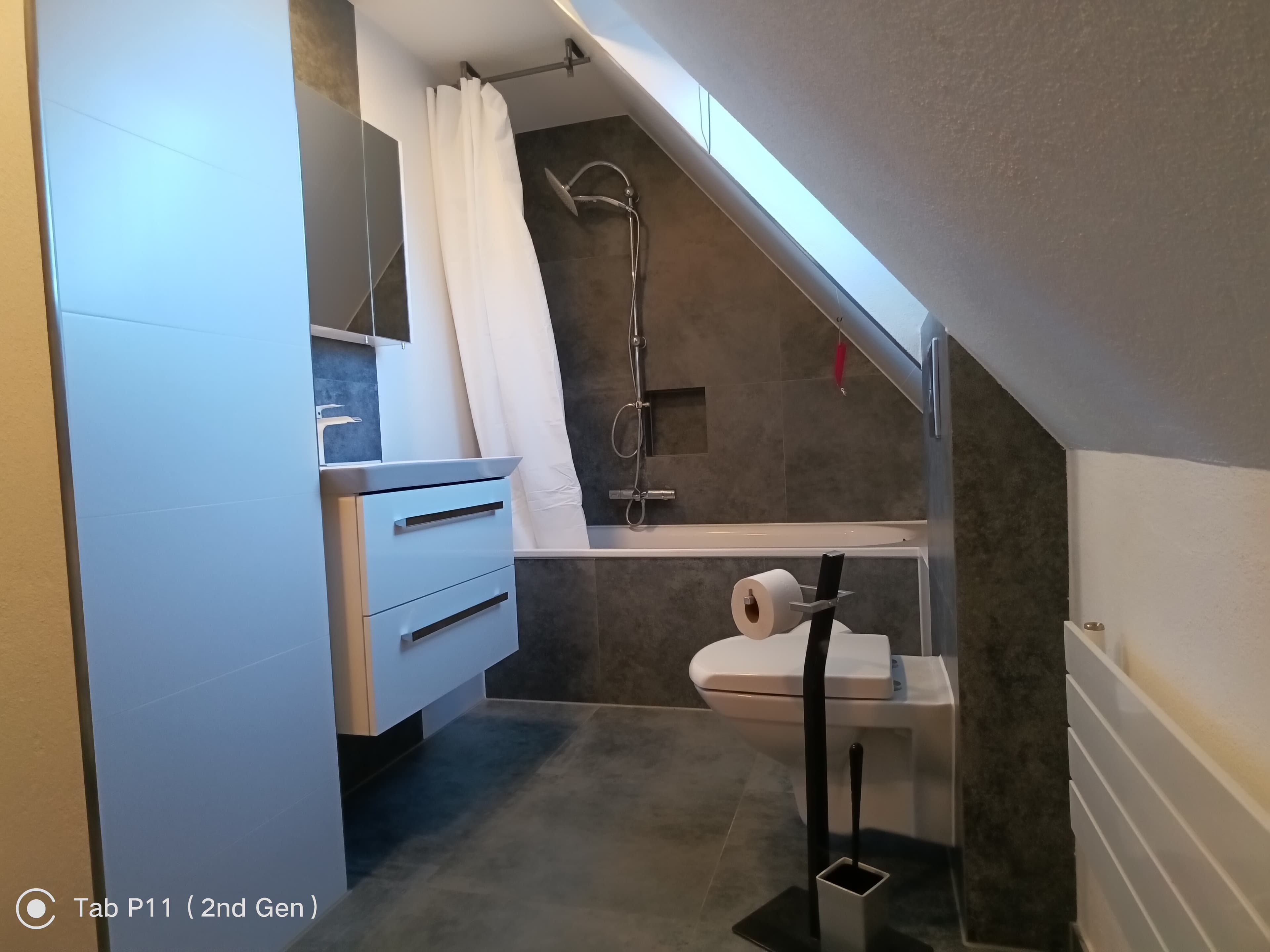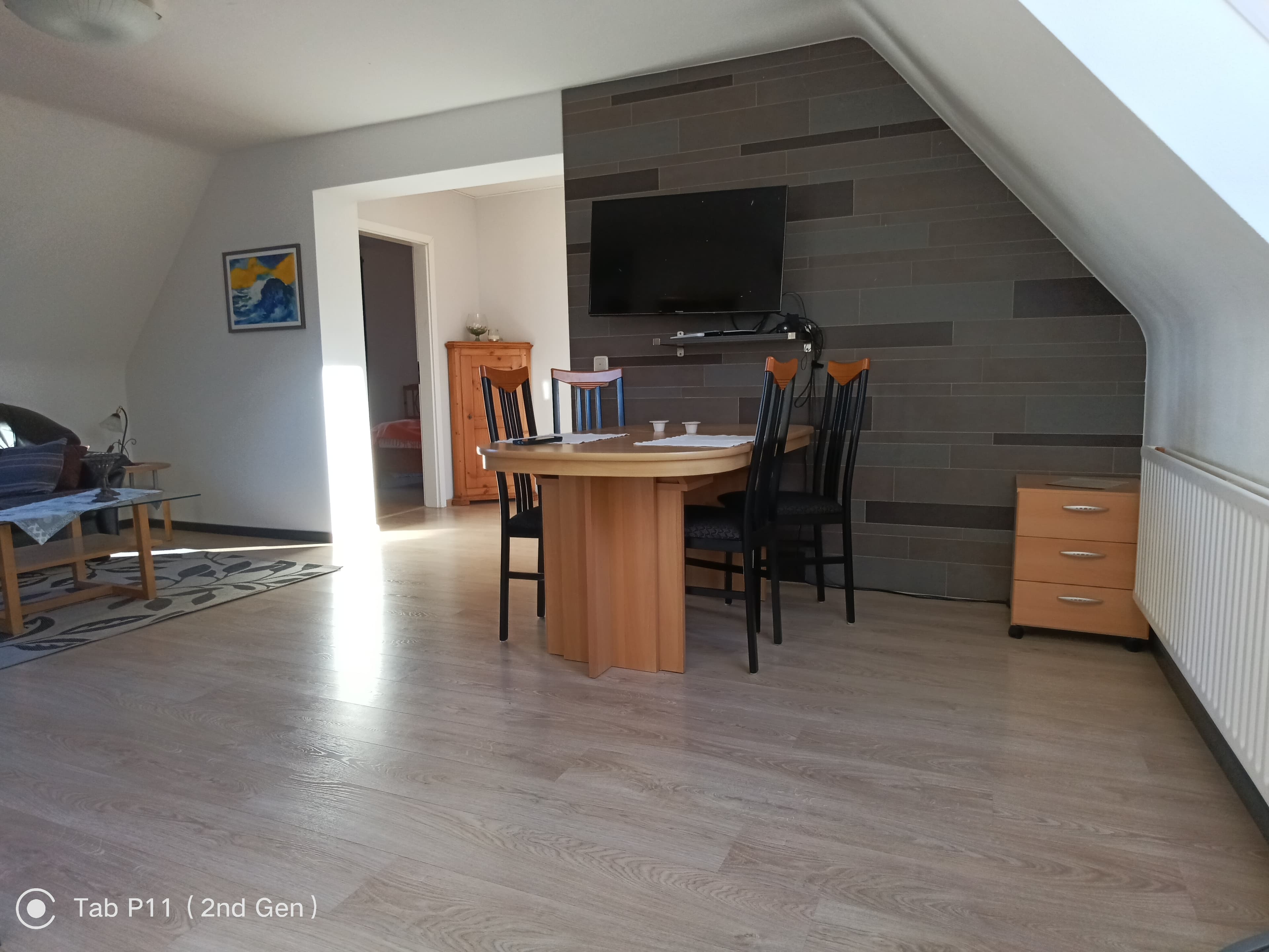 Über das Treppenhaus betreten Sie die 75 qm große Wohnung im ersten Stock. Vom Flur abgehend erreichen Sie auf der rechten Seite das erste Einzelschlafzimmer, auf der linken Seite das Badezimmer, beide mit Dachschrägen. Geradezu befindet sich der L-förmige Wohn-& Essbereich mit der offenen Küche. Hier erkennen Sie sofort noch einen kleinen Innenflur, davon abgehend betreten Sie die beiden letzten Schlafräume. Zur Straßenseite das zweite Einzelzimmer, dem gegenüber das Doppelzimmer mit zwei Einzelbetten.
