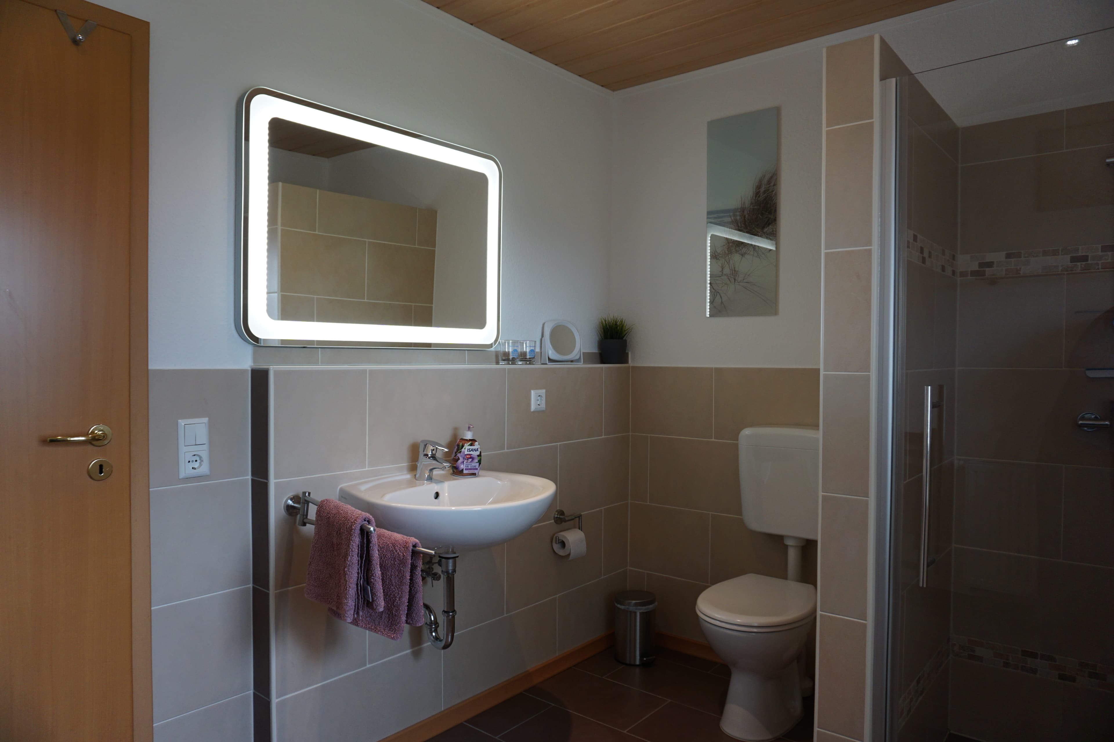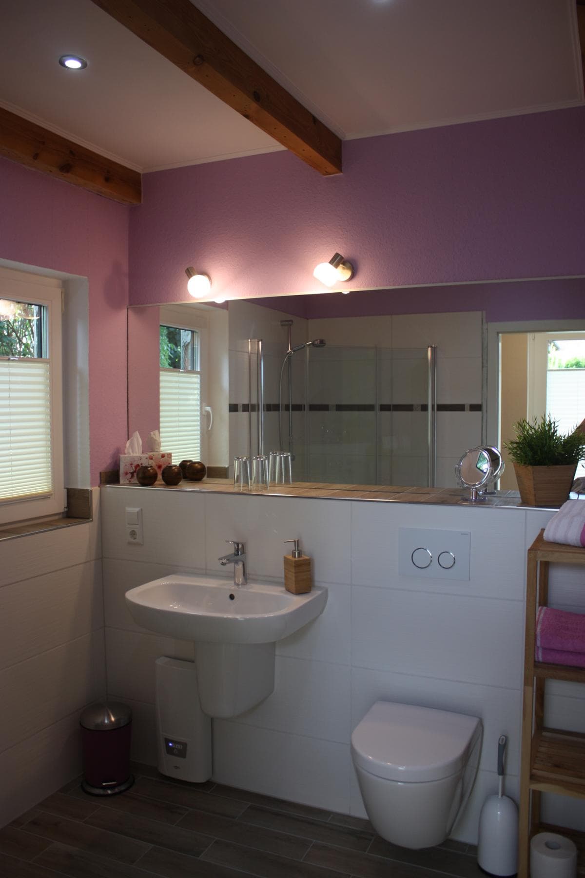 - Bad mit bodengleicher Dusche, WC und Fußbodenheizung