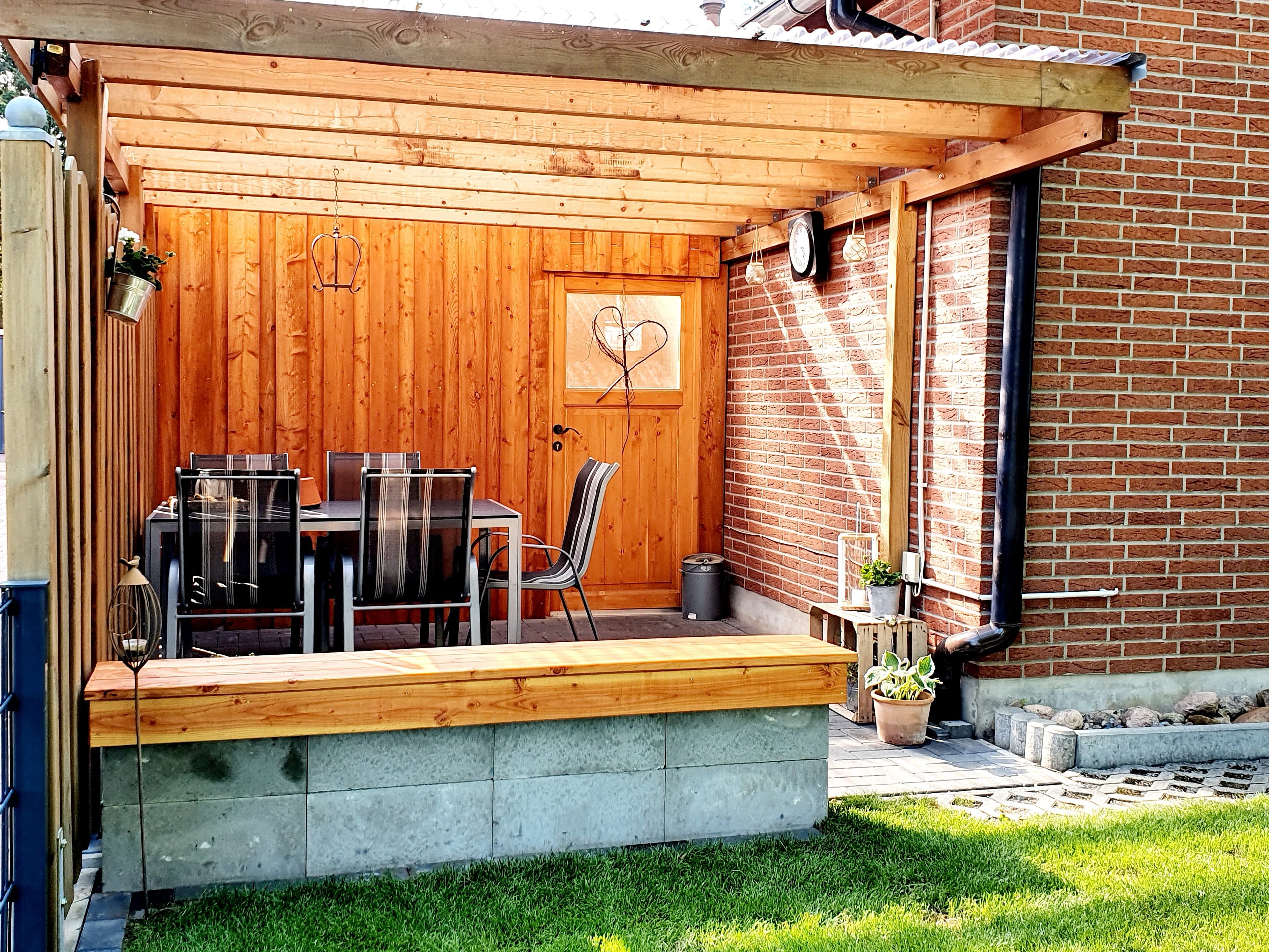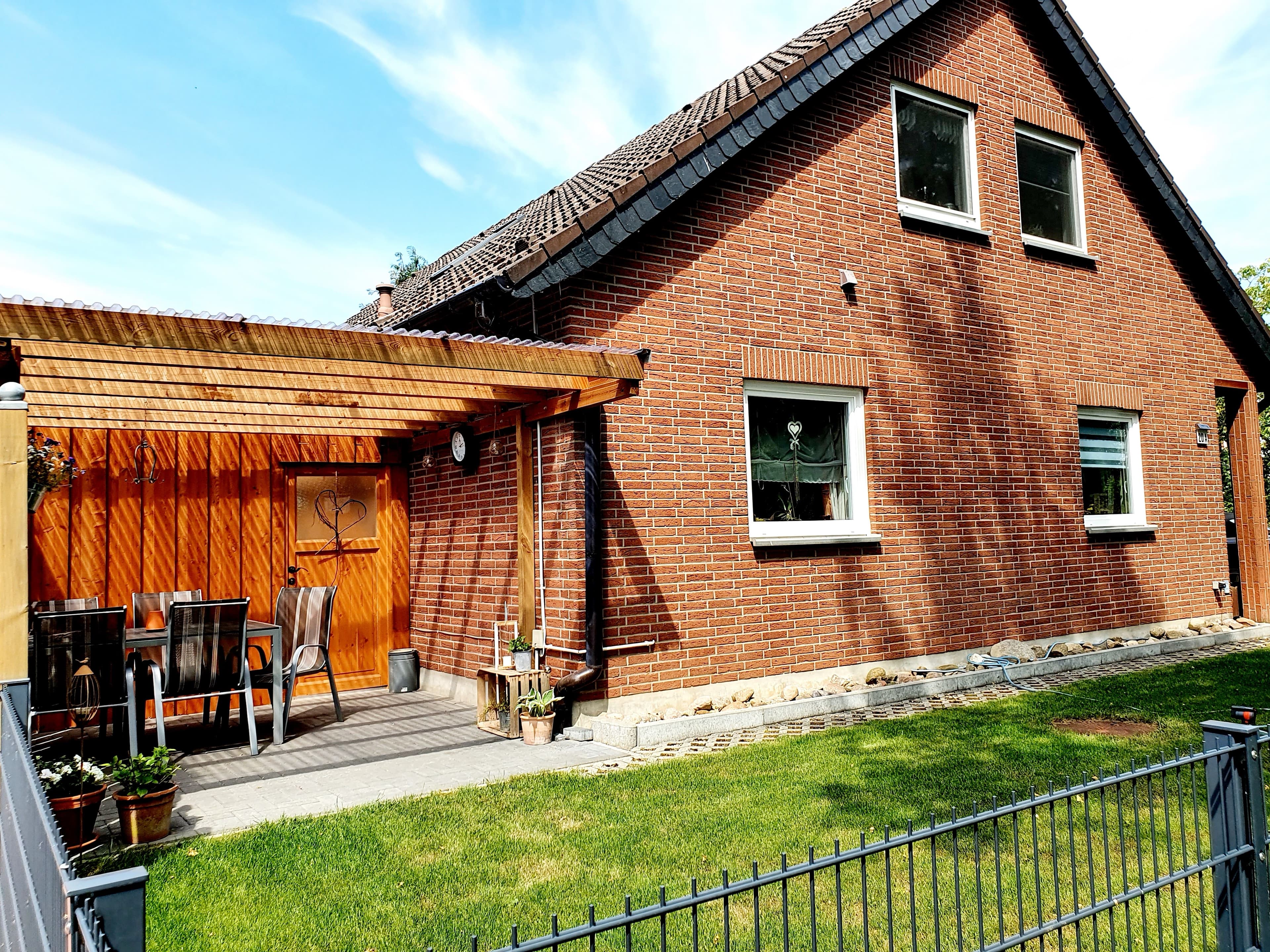 - kleiner Garten mit überdachter Terrasse, Grill, abschließbarer Abstellraum für Fahrräder usw.