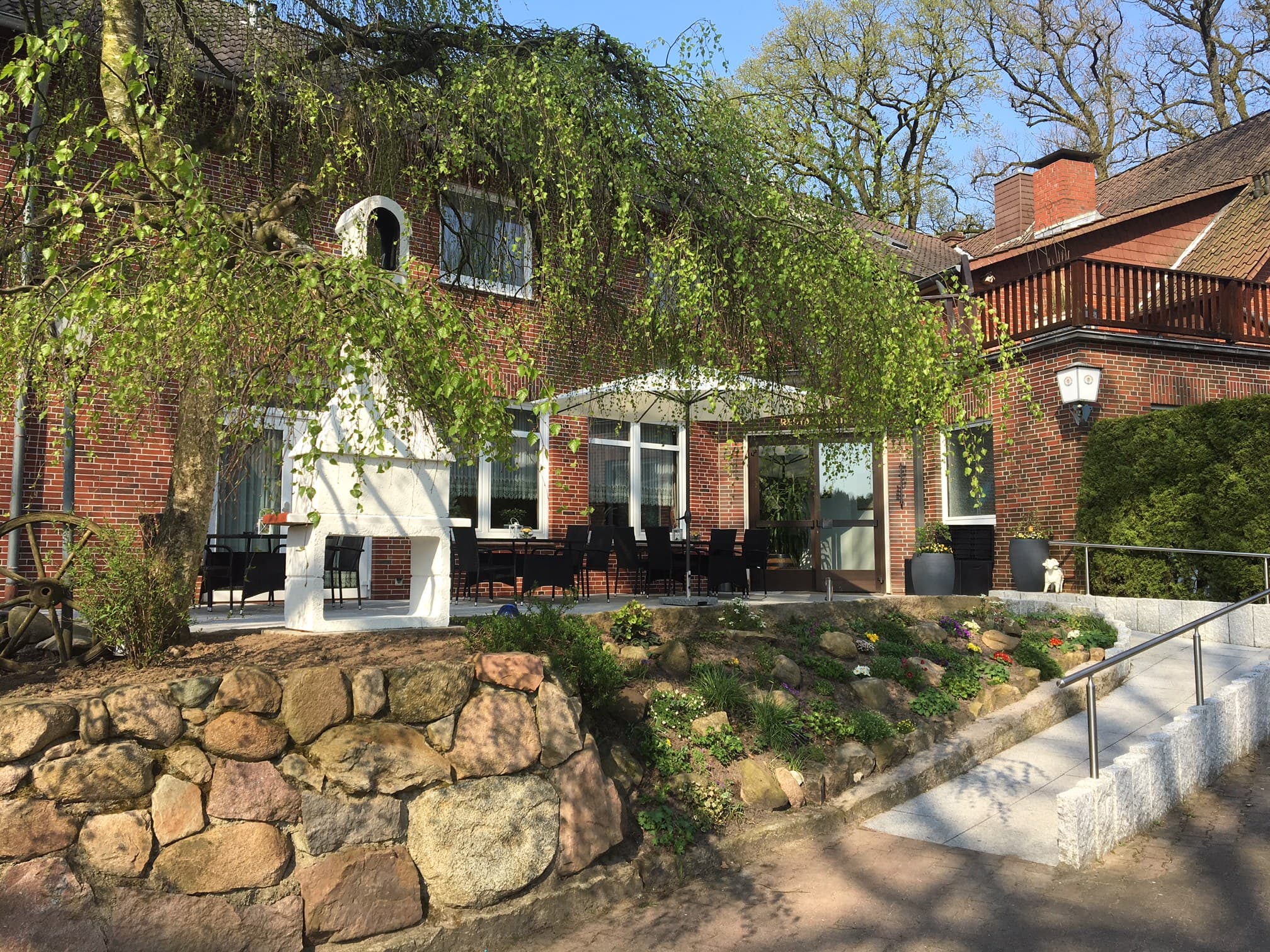 An warmen Tagen lassen Sie sich auf unserer Terasse oder im Biergarten verwöhnen. An kalten Tagen können Sie ihr Frühstück am kuschelig warmen Kamin genießen.
