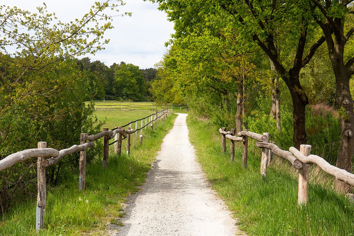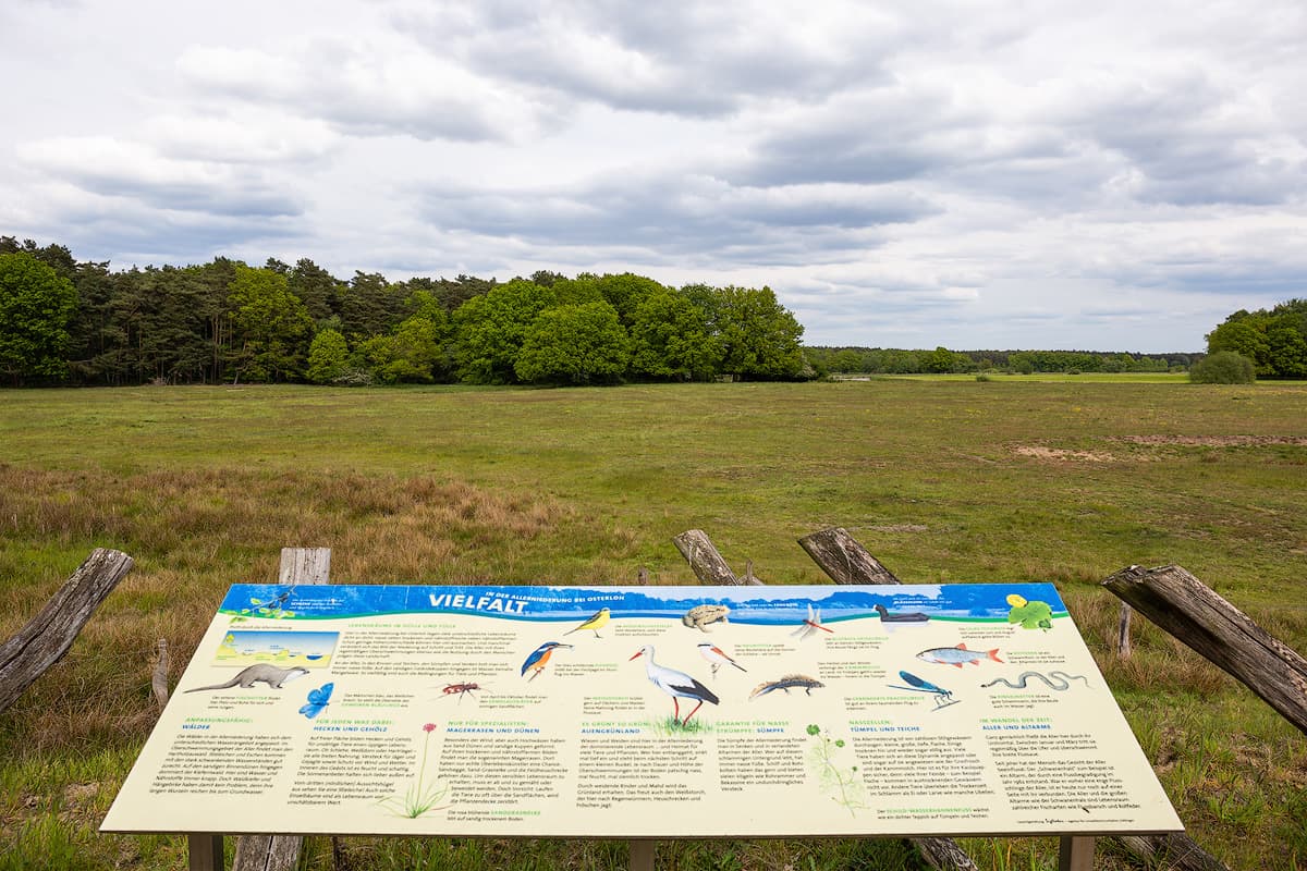 Der Weg führt nun durch Wald und Felder nach Osterloh. Um die Artenvielfalt der Restaurierungsflächen zu entdecken, folgen Sie den Wegweisern zum NABU-Projekt. Danach folgen die Osterloher Alpen, ein bewaldeter Hügel, eine ehemalige Düne. Lassen Sie Ihre Seele baumeln und genießen Sie die idyllische Stille.