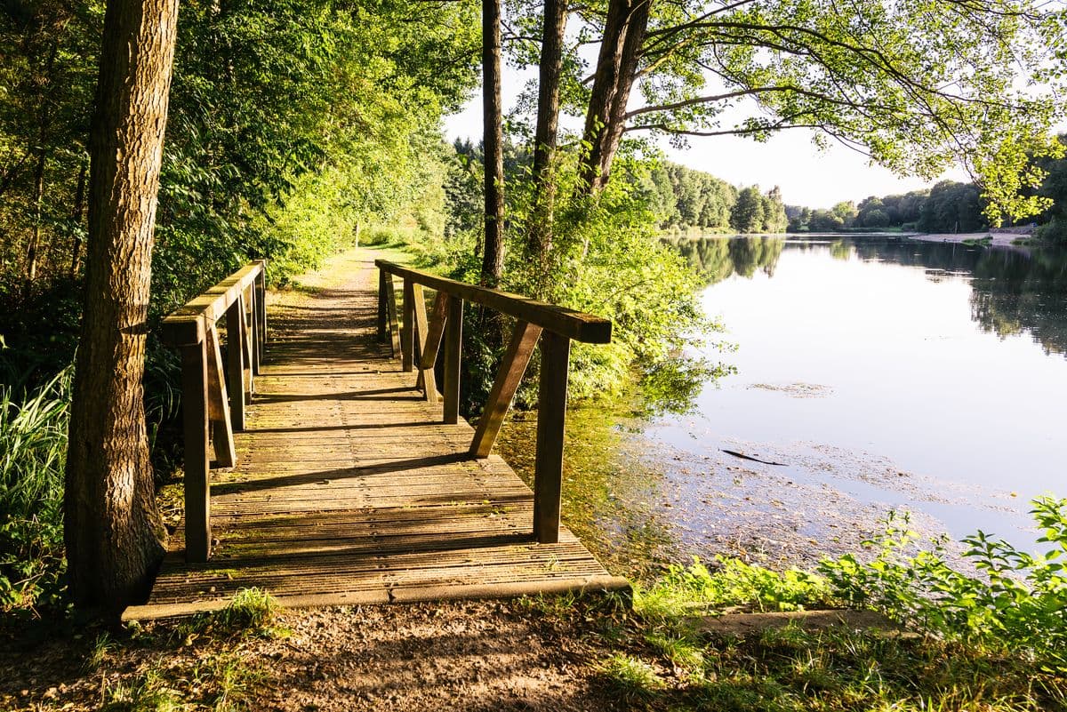 Der Hardausee mit einer Fläche von 80.000 m² ist ideal zum Baden, Tretbootfahren, Angeln oder zum Faulenzen in der Sonne.