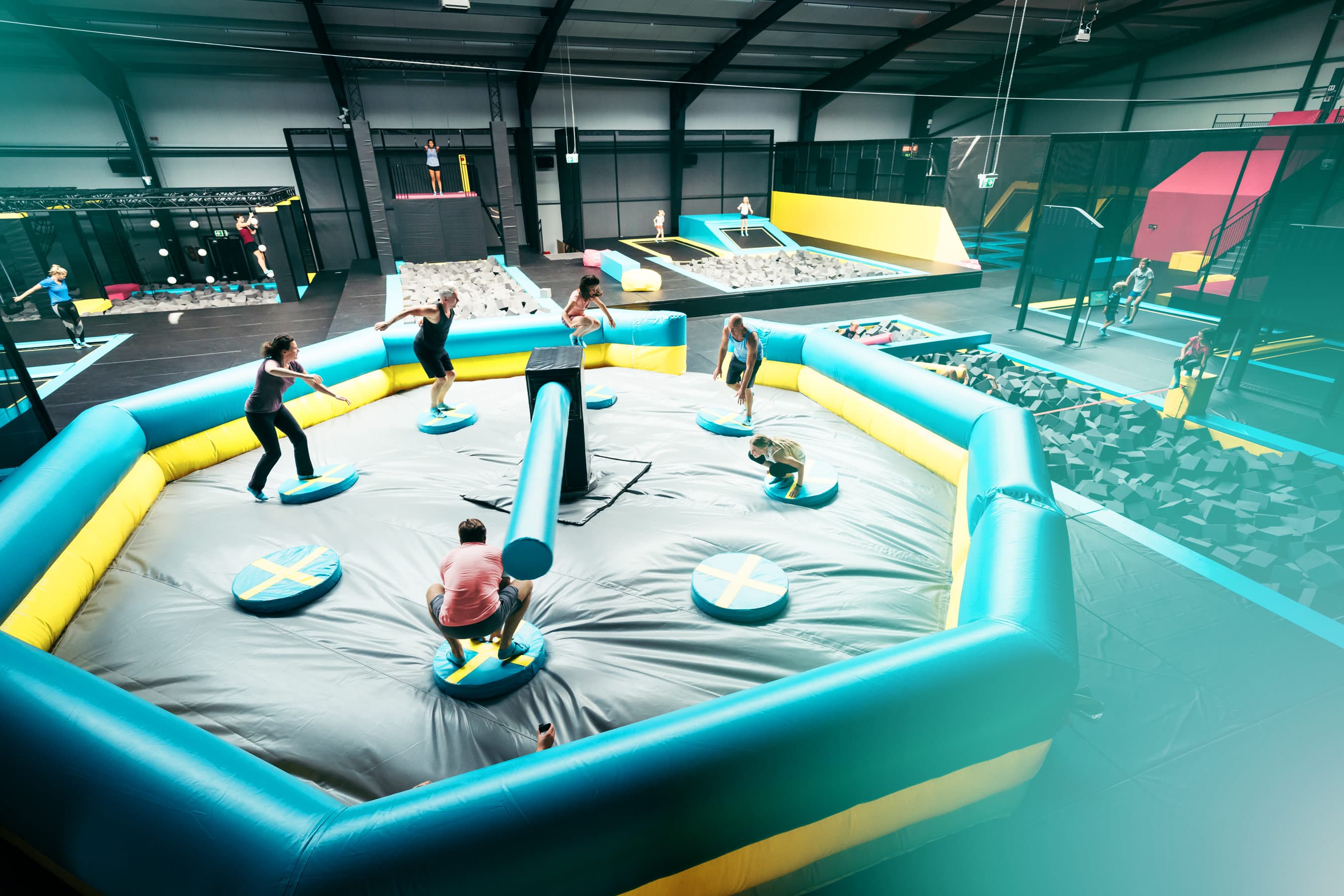 Zeige, was in dir steckt! Im großen Trampolinbereich kannst du dir die Seele aus dem Leib hüpfen. Hier stehen unzählige Trampoline zum Springen, Üben und Austoben bereit!