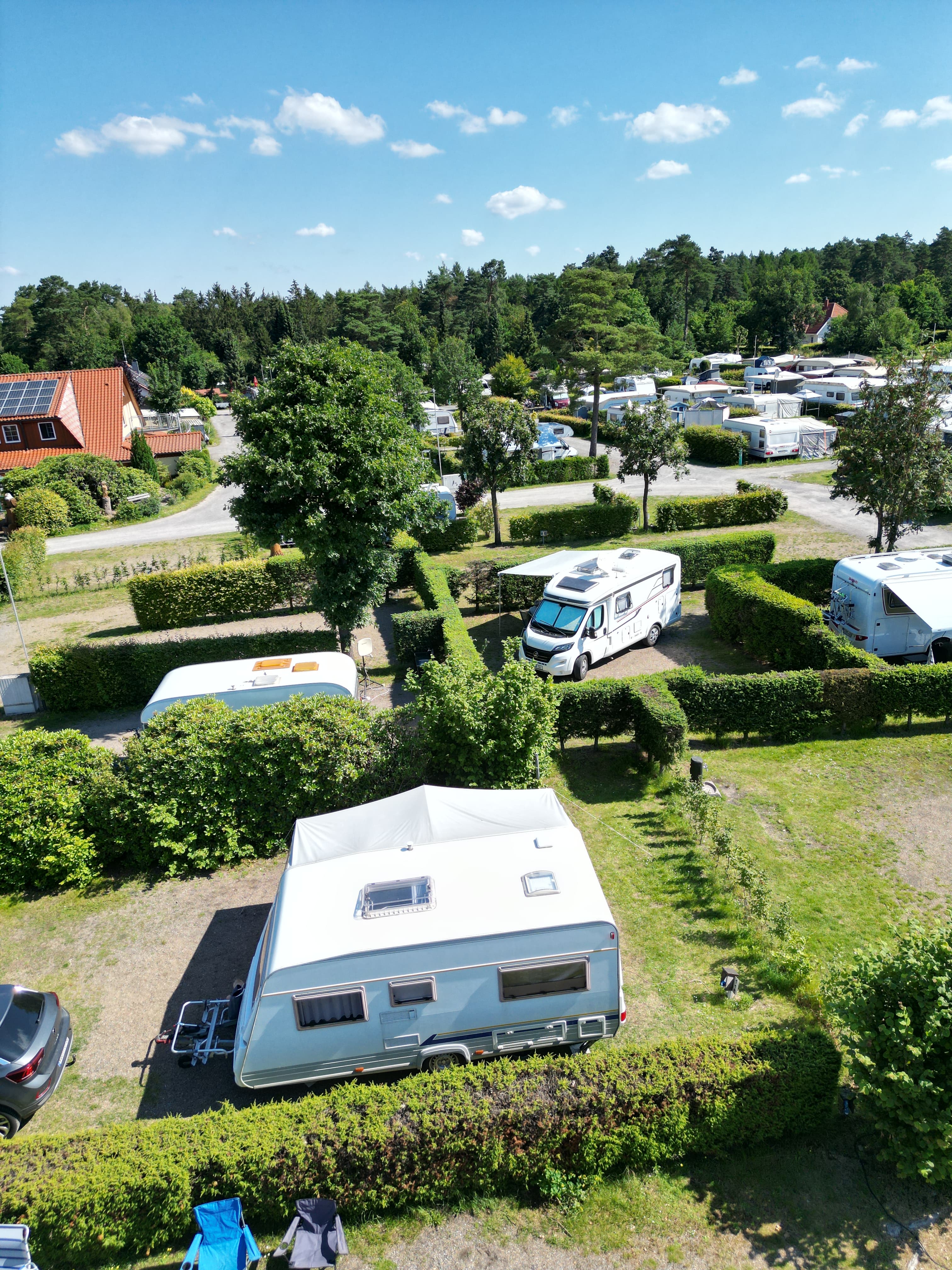 Alle 110 Komfortstellplätze sind mit Strom-, Wasser- und Abwasseranschluss ausgestattet und mit Naturhecken parzelliert!