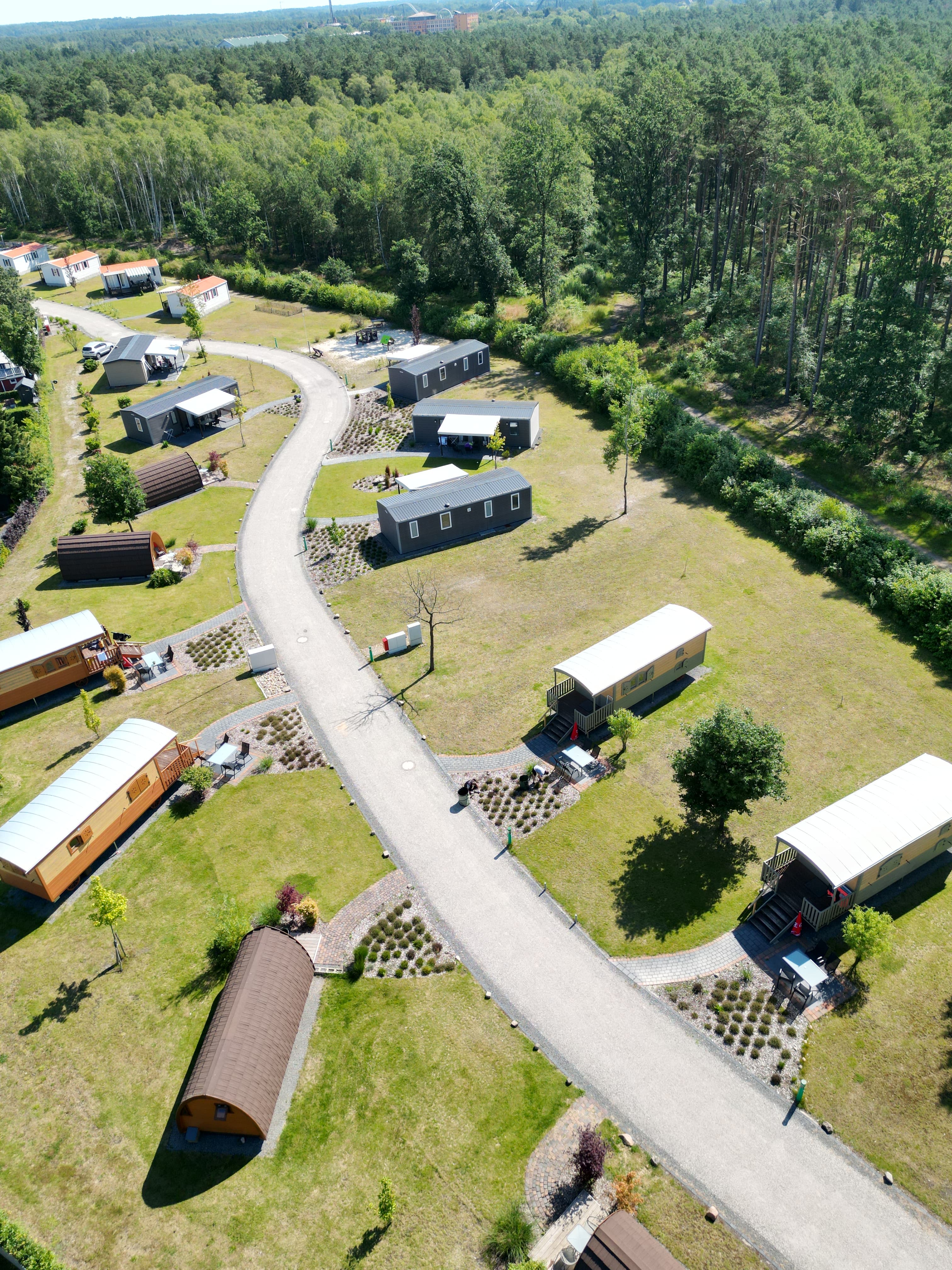 Für Gäste ohne Zelt, Wohnwagen oder Wohnmobil sind unsere Schlaf-Fässer und das Heidedorf ideal!