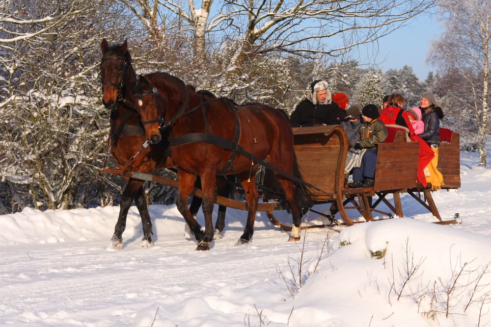 Jetzt schon vormerken: Entdecken Sie die Lüneburger Heide einmal anders während einer romantischen Pferdeschlitten-Fahrt durch die verschneite Landschaft.