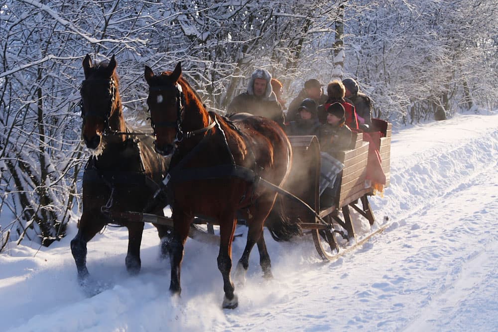 Die Pferdeschlitten-Fahrten dauern ca. 1 Stunde und kosten ca. 50€ - 60€.