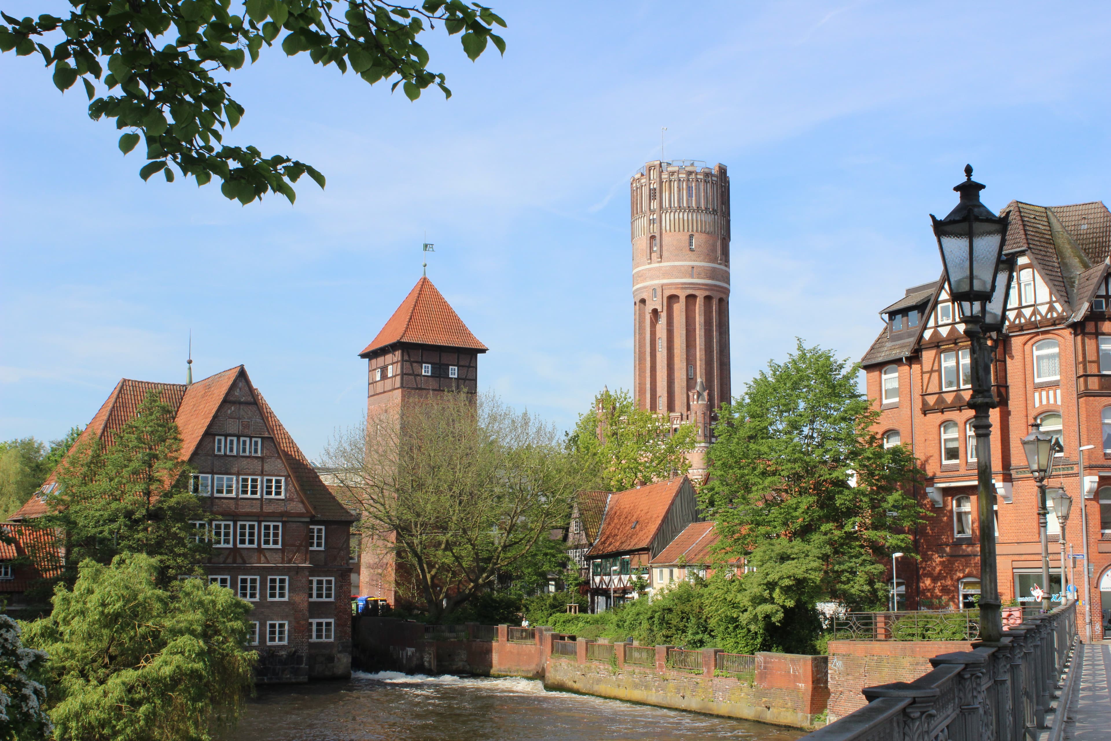 Prachtvolle Bürgerhäuser mit ihren charakteristischen Backsteingiebeln und der idyllische Stintmarkt am Ufer der Ilmenau mit historischen Speichergebäuden, Mühlen und dem Alten Kran zeugen vom einstigen Reichtum der Stadt.