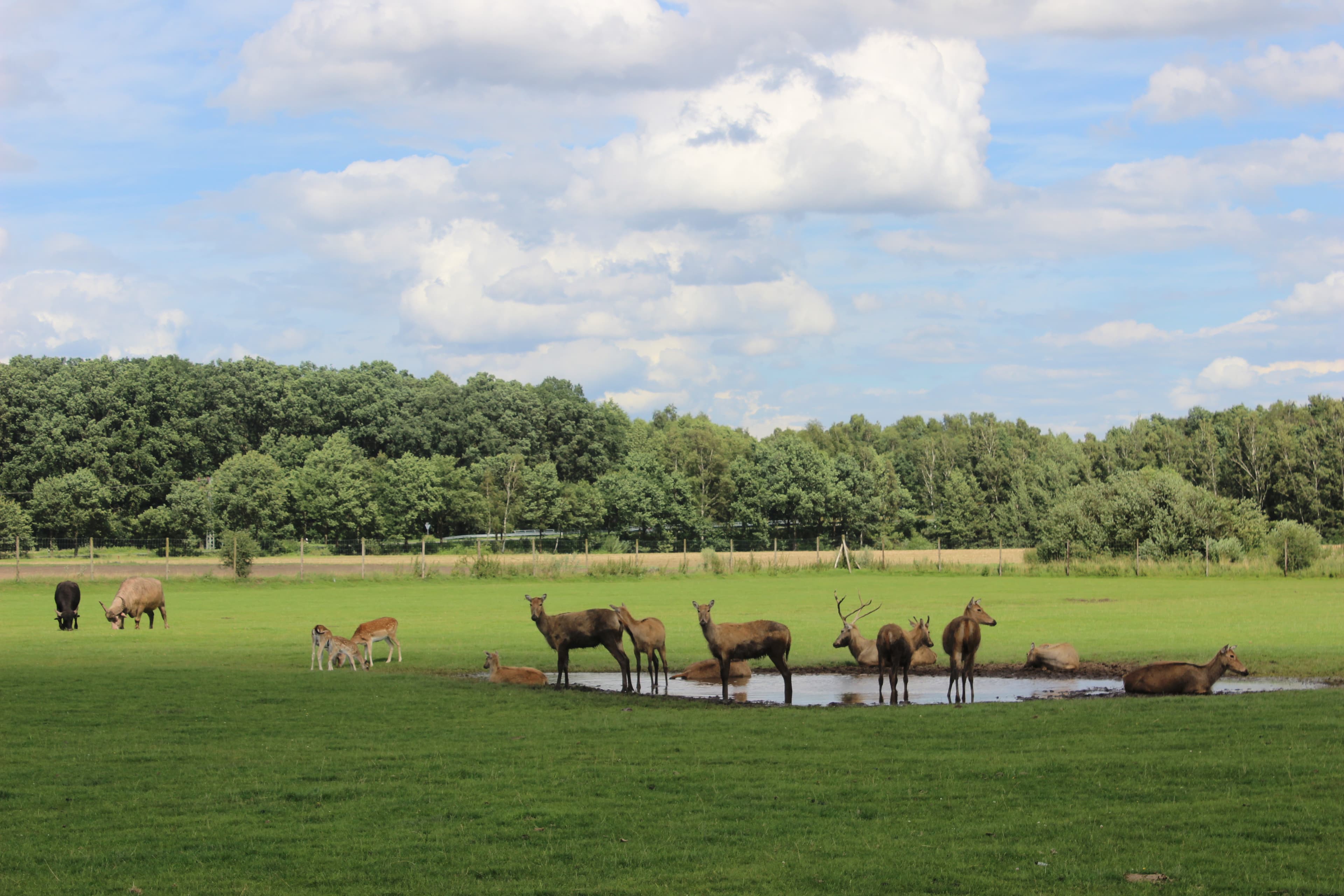 Damit man sich vor dem Genuss eines Rinder-, Bison- oder Büffelsteaks zunächst selbst von der artgerechten Haltung der Tiere überzeugen kann, geht’s mit dem Traktor mit Anhänger samstags und sonntags auf Nutztiersafari. „Safari Ranger“ Thomas Bielstein fährt Interessierte durch das unendlich weit erscheinende Gelände und weiß zu nahezu jedem Elch und jedem Zebu eine Anekdote zu berichten. Wenn Hirsch, Wollschwein und Lama hier eins haben, dann ist es Platz zum Leben. Nach zwei Stunden mit zahllosen Stops bei verschiedenen vor allem alten und exotischen Tierrassen geht’s zurück zum Hofgebäude. Unzählige Stallungen und Gehege können hier auch zu Fuß in Augenschein genommen werden.