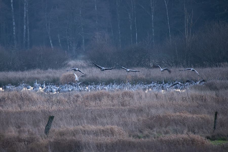 Die Kraniche sind häufig im Postmoor zu finden, dort gibt es einen Beobachtungsturm