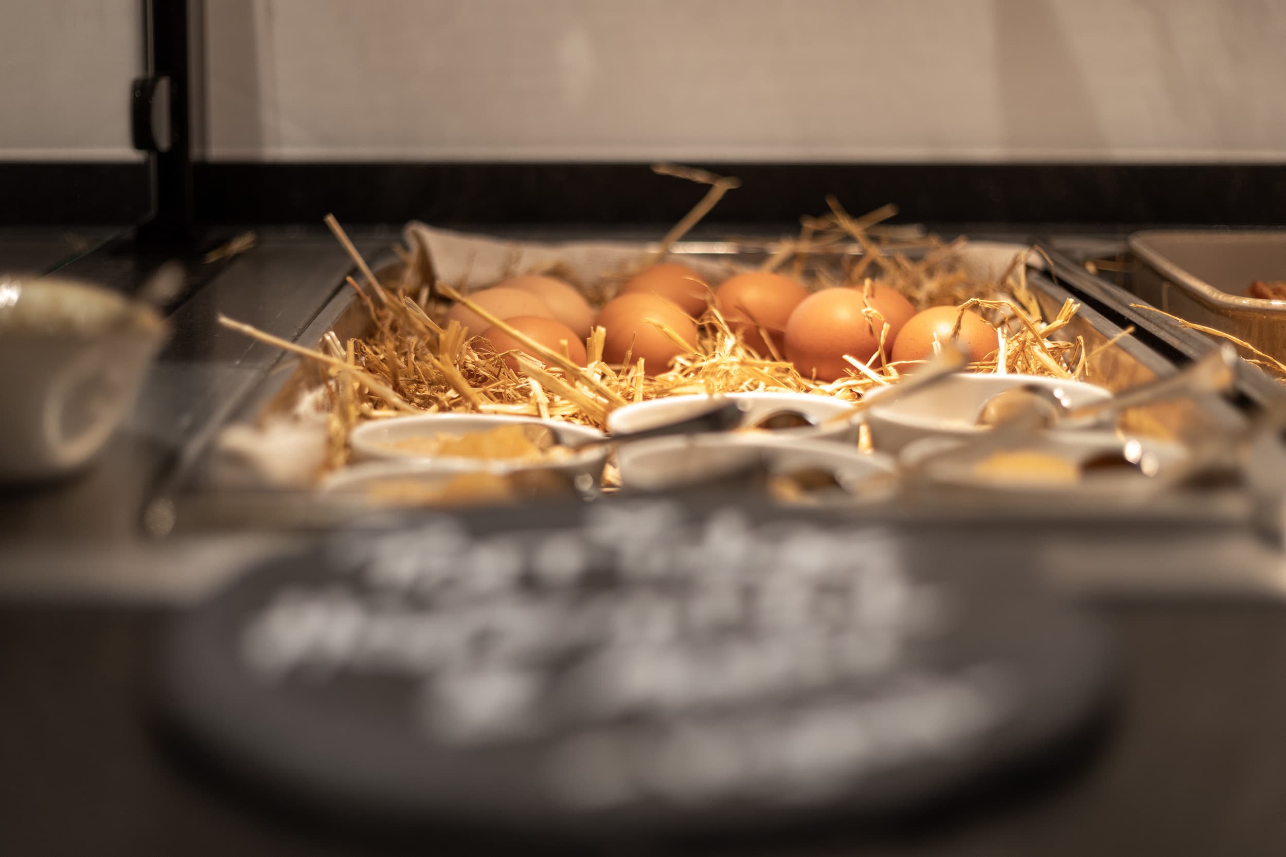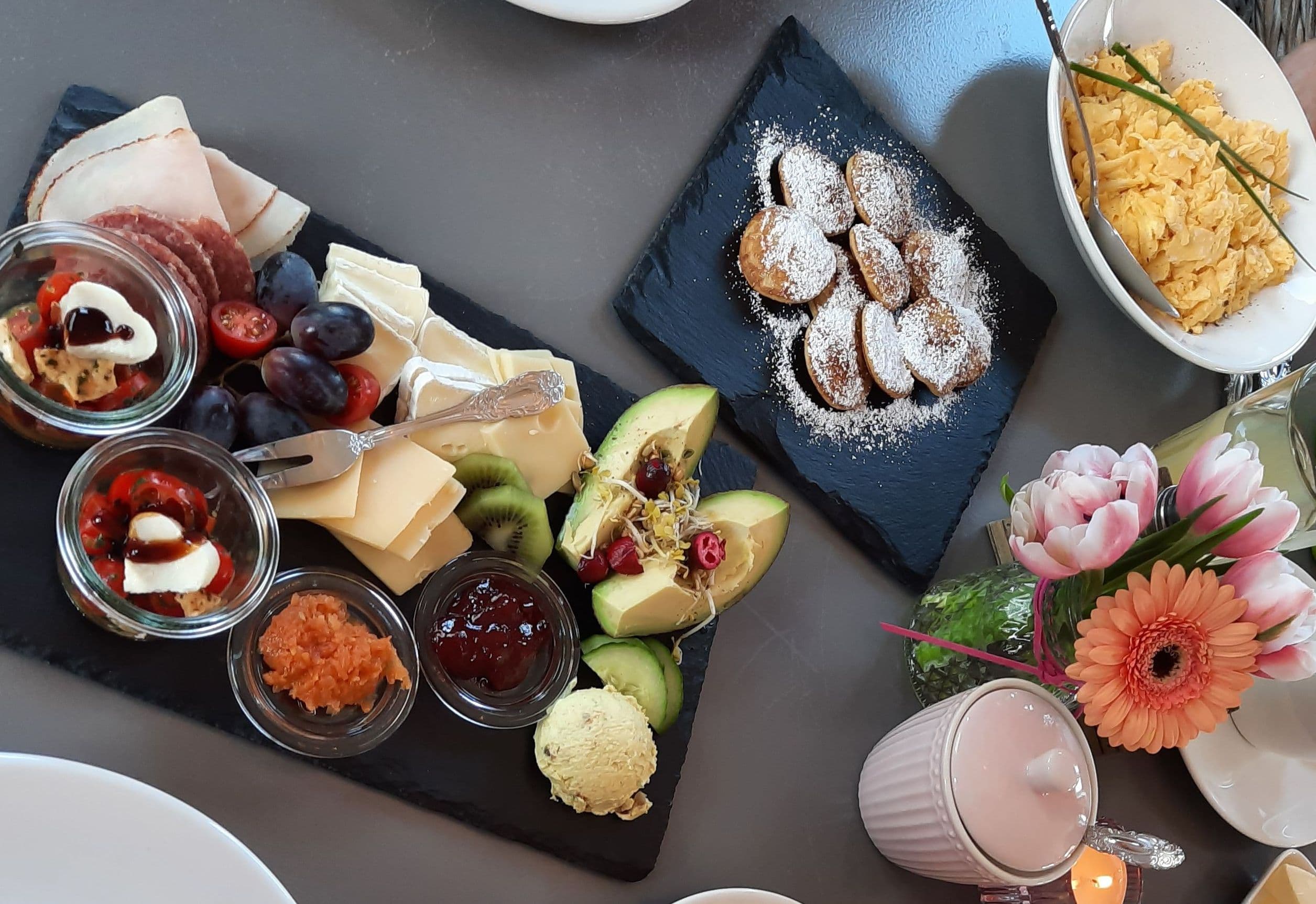 Ein frischer Obstsalat und knackige Gemüsesticks mit hausgemachtem Dip gehören doch zu einem ausgiebigen Frühstück. Grillgemüse oder Tomate-Mozzarella-Sticks als Veggie Power. Ein warmes Porridge oder cremige Overnight Oats mit Toppings, ein reichhaltiges Müsli mit Früchten, Nüssen und Samen geben Power für den Tag und sind einfach Soulfood. Ein gerösteter Bagel mit Lachs und Frischkäse, dazu eine Eierspeise von Bio-Hühnern aus der Lüneburger Heide.