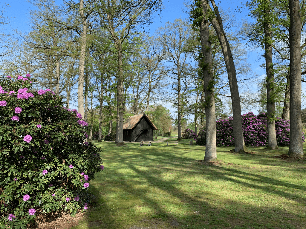 In zahlreichen Arbeitsstunden hat die Dorfgemeinschaft Lutterloh das Außengelände unter den alten Eichen gestaltet, hat die Anlage um einen Pferdeholm und die Umrandung des Parkplatzes mit Eichenbaumstämmen ergänzt und Blumenzwiebeln gepflanzt.