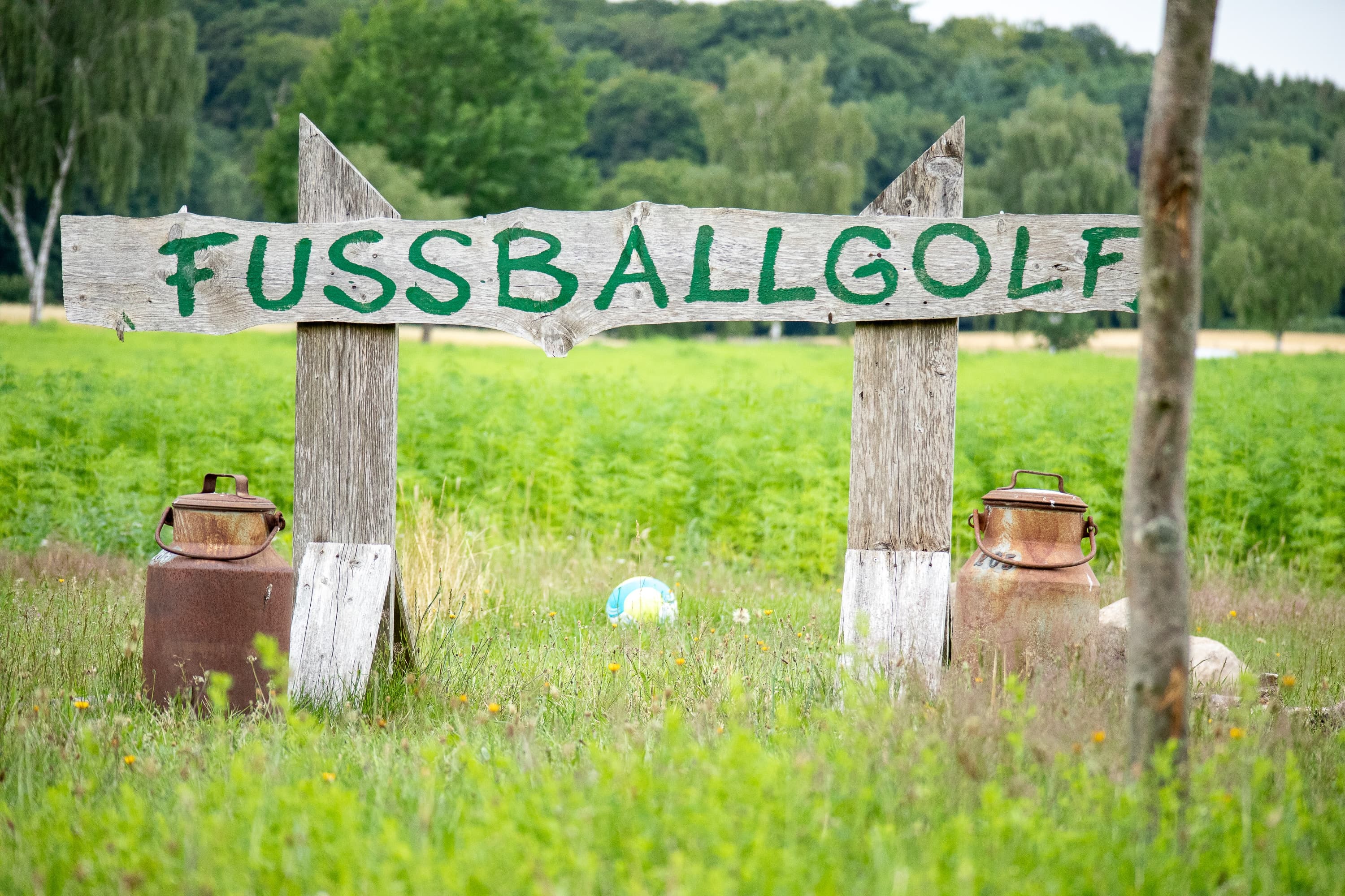 Zum Abenteuer noch einen sportlichen Ausgleich? Direkt vor dem Eingang zum Hanflabyrinth finden Sie eine kleine Fußballgolfanlage. Hier könnt Sie ihr Geschick herausfordern und einen Fußball durch knifflige Hürden manövrieren.