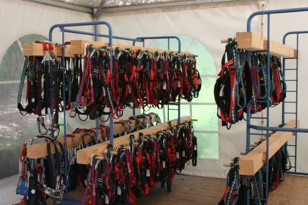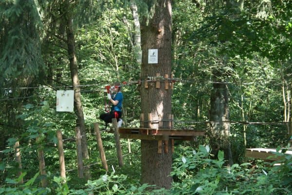 Ausgerüstet mit Klettergurt & Handschuhen kann Jeder (ab 6 Jahren) nach einer kurzen Einweisung auf eigene Faust das Laubdach erkunden.
