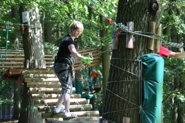 Im Kletterwald des „BUHL Activity Park“ Walsrode kann in unmittelbarer Nähe zum Vogelpark in eigens präparierten Bäumen geklettert werden.