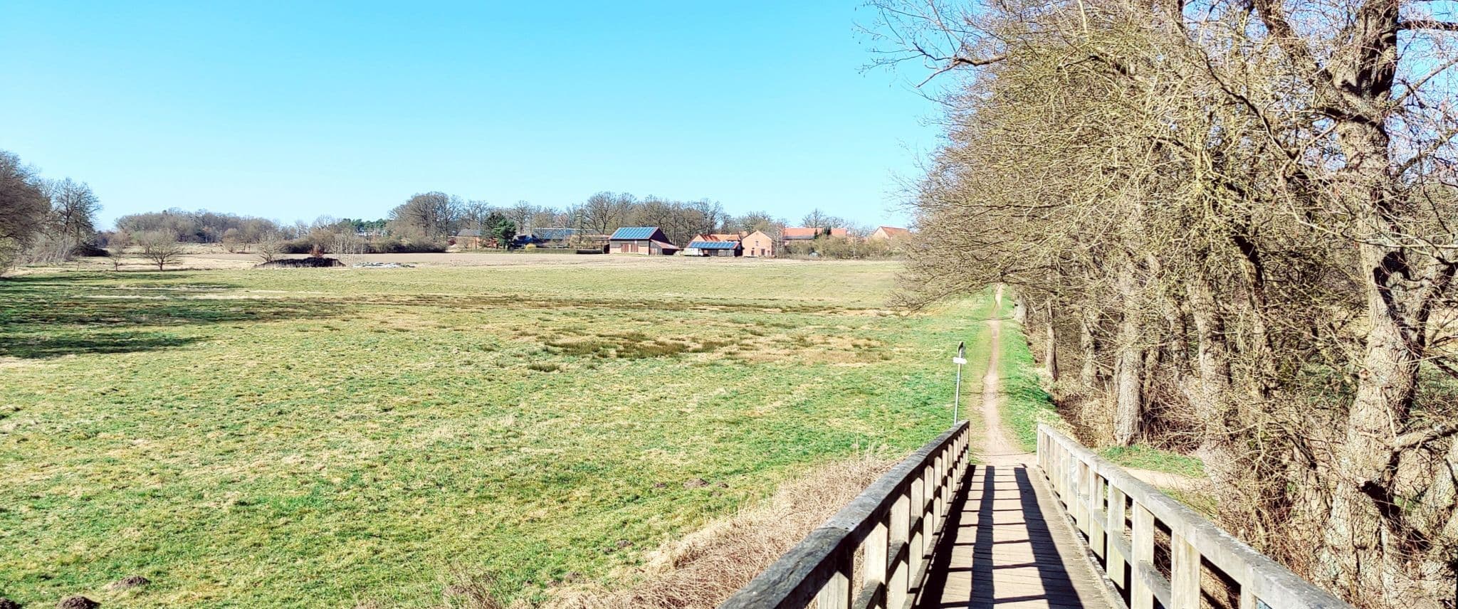 Zwischen Haaßel und Niendorf I durchquerst du ein kleines Wäldchen, das wie aus der Zeit gefallen wirkt. Die Bäume stehen dort in einer flachen Wasserfläche – still, beinahe verwunschen. Ringsum ist die Natur voller Leben: Vogelstimmen aus allen Richtungen, ein leises Rascheln, ein Flügelschlag. Ein idealer Ort, um kurz anzuhalten, zu lauschen – und ganz bei dir zu sein.