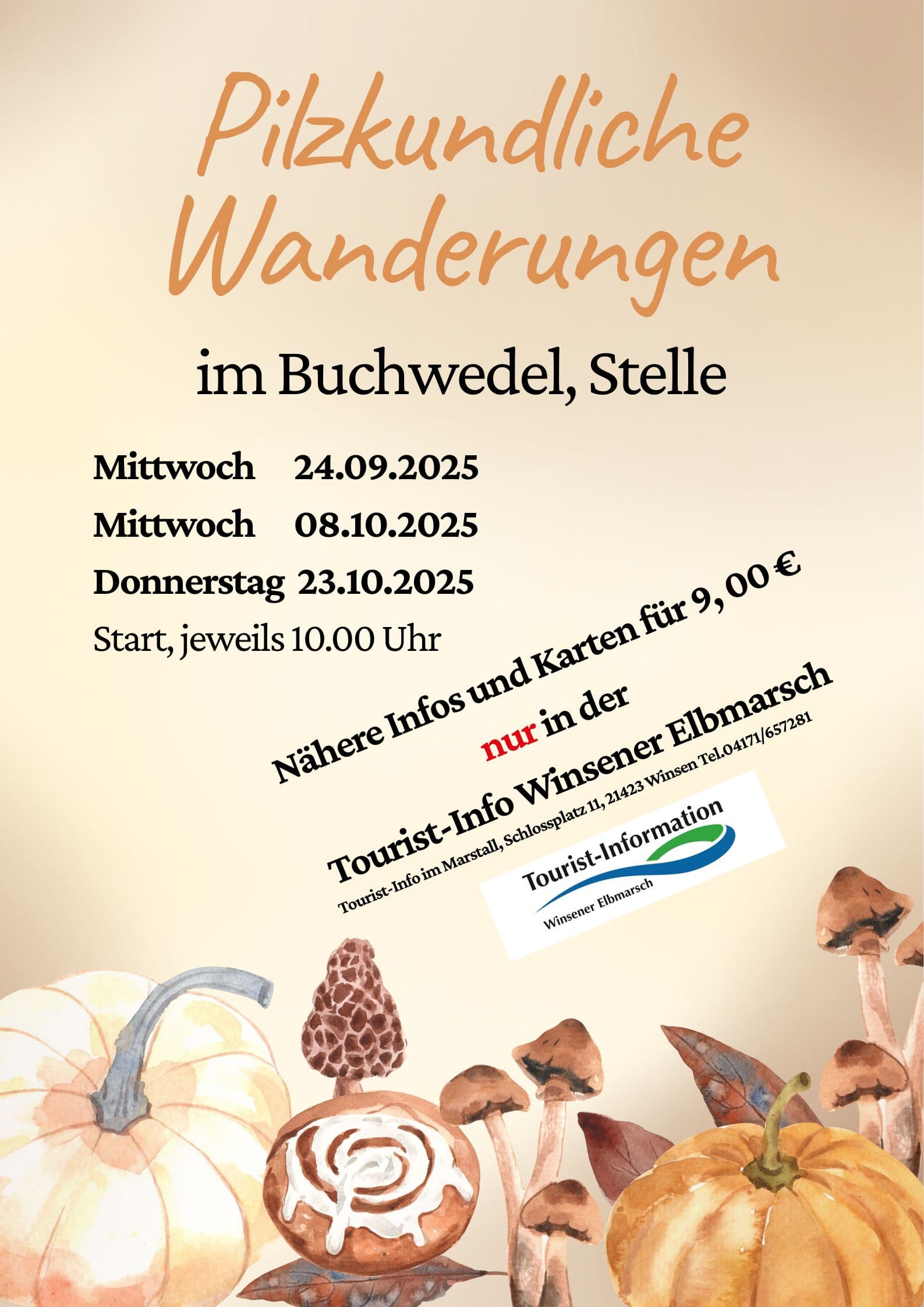 Die Teilnehmer treffen sich um 10 Uhr. Wettergerechte Kleidung, ein Korb, ein Messer und die Fitness für eine zwei- bis dreistündige Wanderung sind auf dem Ausflug empfehlenswert. Teilnahmekarten für 9,00 € (Kinder sind frei) sind ausschließlich in der Tourist-Information Winsener Elbmarsch (Marstall/Winsen,Luhe) erhältlich.