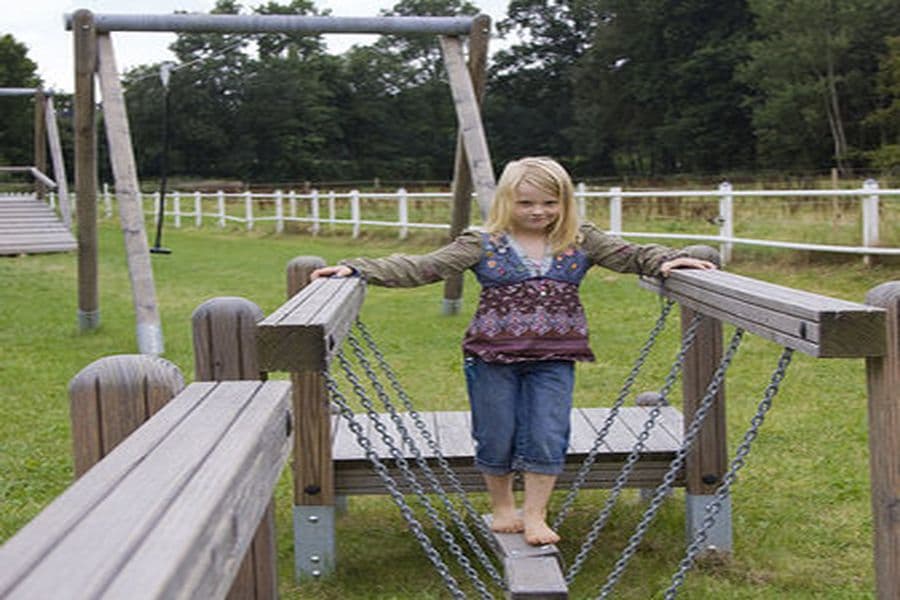 während die Kinder sich auf dem großzügigen Spielplatz fernab von der Straße austoben können.
