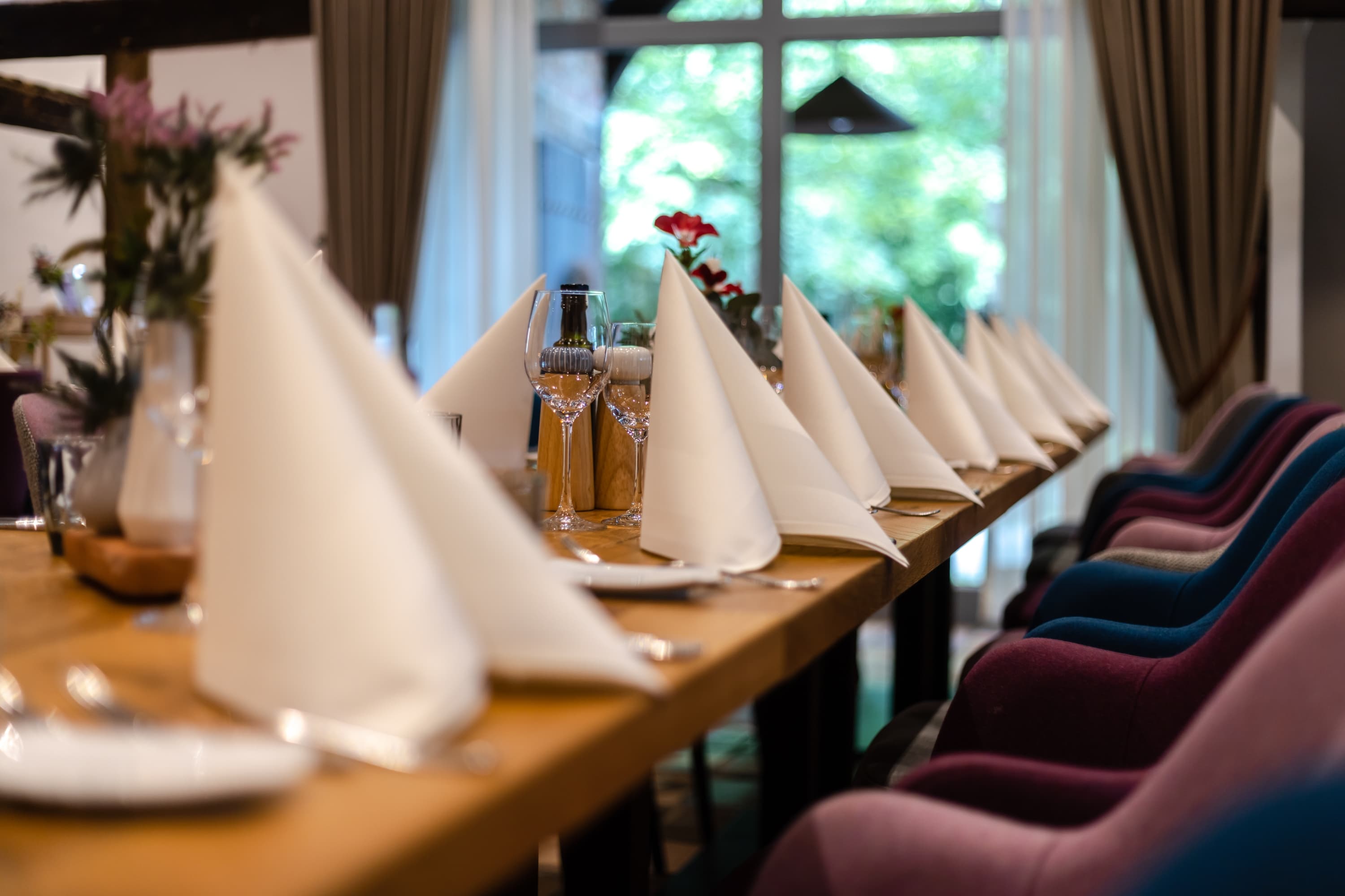 Ein Hallenhaus war zur damaligen Zeit ein Wohnstallhaus, welches im typischen Fachwerkstil errichtet wurde. Hier wurden Wohnraum, Stallungen und Erntelager unter einem Dach zusammengefasst. In diesem besonderen, traditionellen Ambiente erleben Sie eine moderne und kreative Küche mit regionalen Produkten wie originell zubereitete Wildgerichte von Wild aus den heimischen Wäldern.