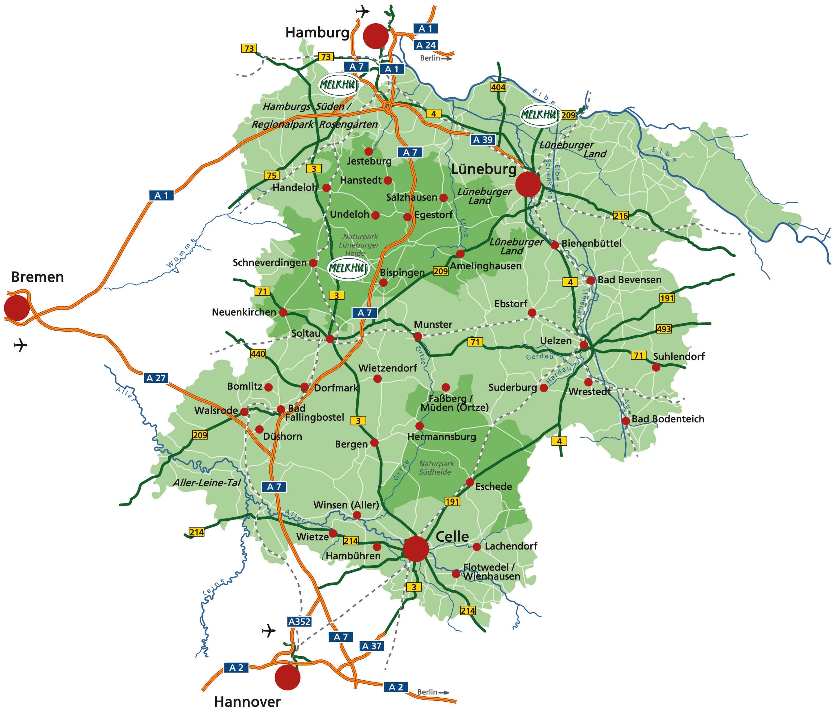 Radwege: Seeve-Radweg, Ilmenauradweg und Elberadweg liegen in der Nähe