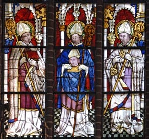 Im Chor zeigen Glasfenster Ansgar mit der Reliquie des heiligen Sixtus, links und rechts von Ansgar stehen die heiligen Sixtus und Sinnitius.