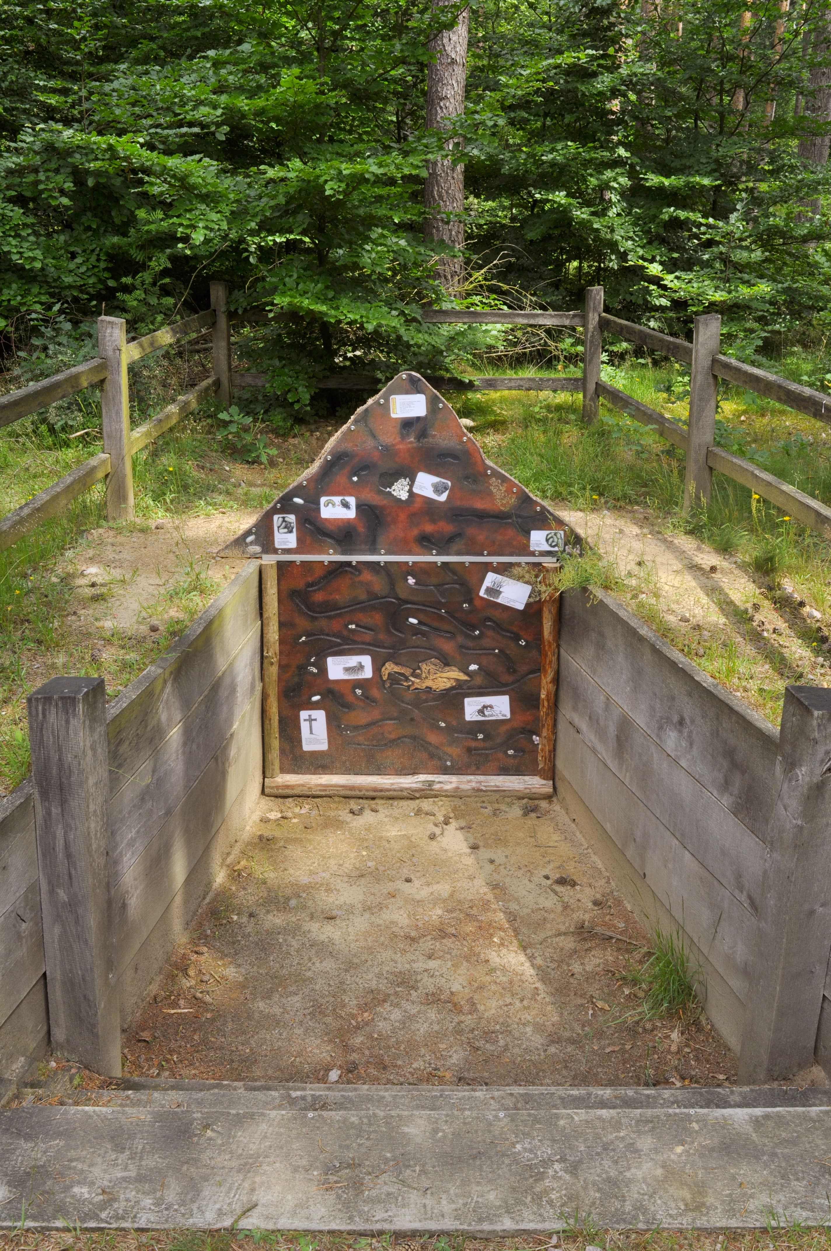 Der Holzrahmen auf dem Walderlebnispfad lenkt den Blick auf einen Ameisenbau der Roten Waldameise. Bis zu zwei Millionen Individuen – bestehend aus Arbeiterinnen, Männchen und Königinnen – leben hier zusammen. „Ameisen sind Landschaftspfleger, sie lockern mit ihren Gängen den Boden auf“, erklärt Knut Sierk vom Waldpädagogikzentrum Lüneburger Heide, „hierdurch können sich Pflanzen besser verwurzeln“. Zudem säubern die Ameisen den Wald, transportieren tote Tiere ab und sie vertilgen Forstschädlinge in großen Mengen. Gleichzeitig sind sie Nahrungsquelle für andere Tiere wie Kröten, Vögel, Eidechsen und Spinnen. Der Eichelhäher nutzt die Ameisensäure zur Gefiederpflege. Die Ameisen dieses Baues schaffen es, in der Vegetationszeit zigtausende Pflanzensamen zu verbreiten.