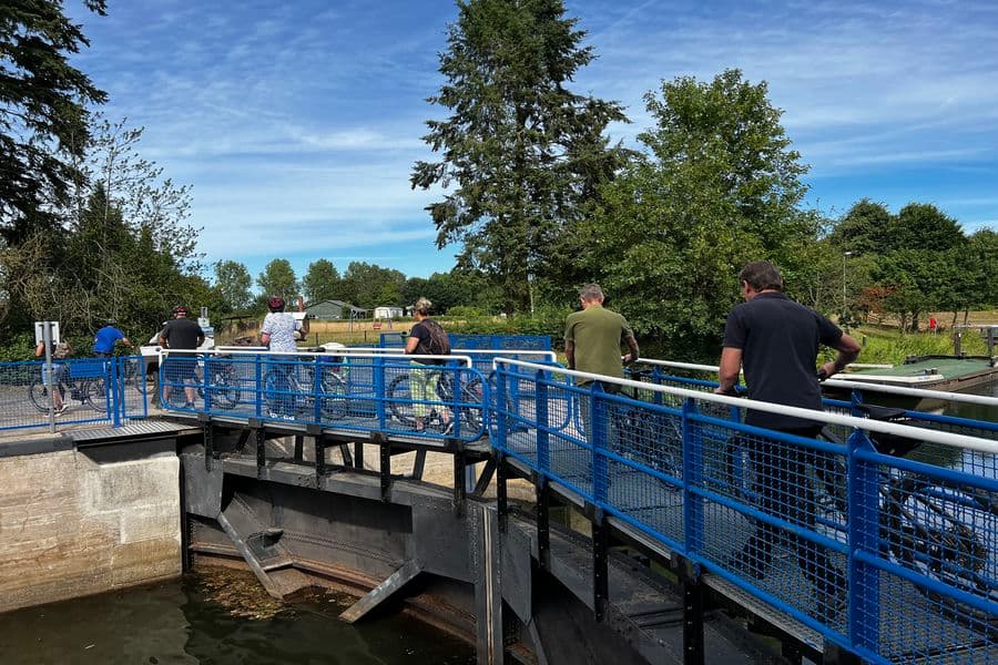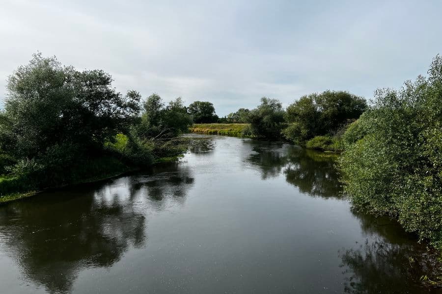 Weiter verläuft die Route an Wiesen vorbei, Richtung Gilten. Hier erblicken Sie recht bald die Holländermühle und erhaschen einen Blick auf die Leine, die Namensgebend für die Region ist. Nur ein kurzes Stück weiter, überqueren Sie die Leine und treffen dann auf die Aller die wiederrum mit Hilfe einer Wehranlage und einer Schleuse hier eine weitere Energiestation bildet.