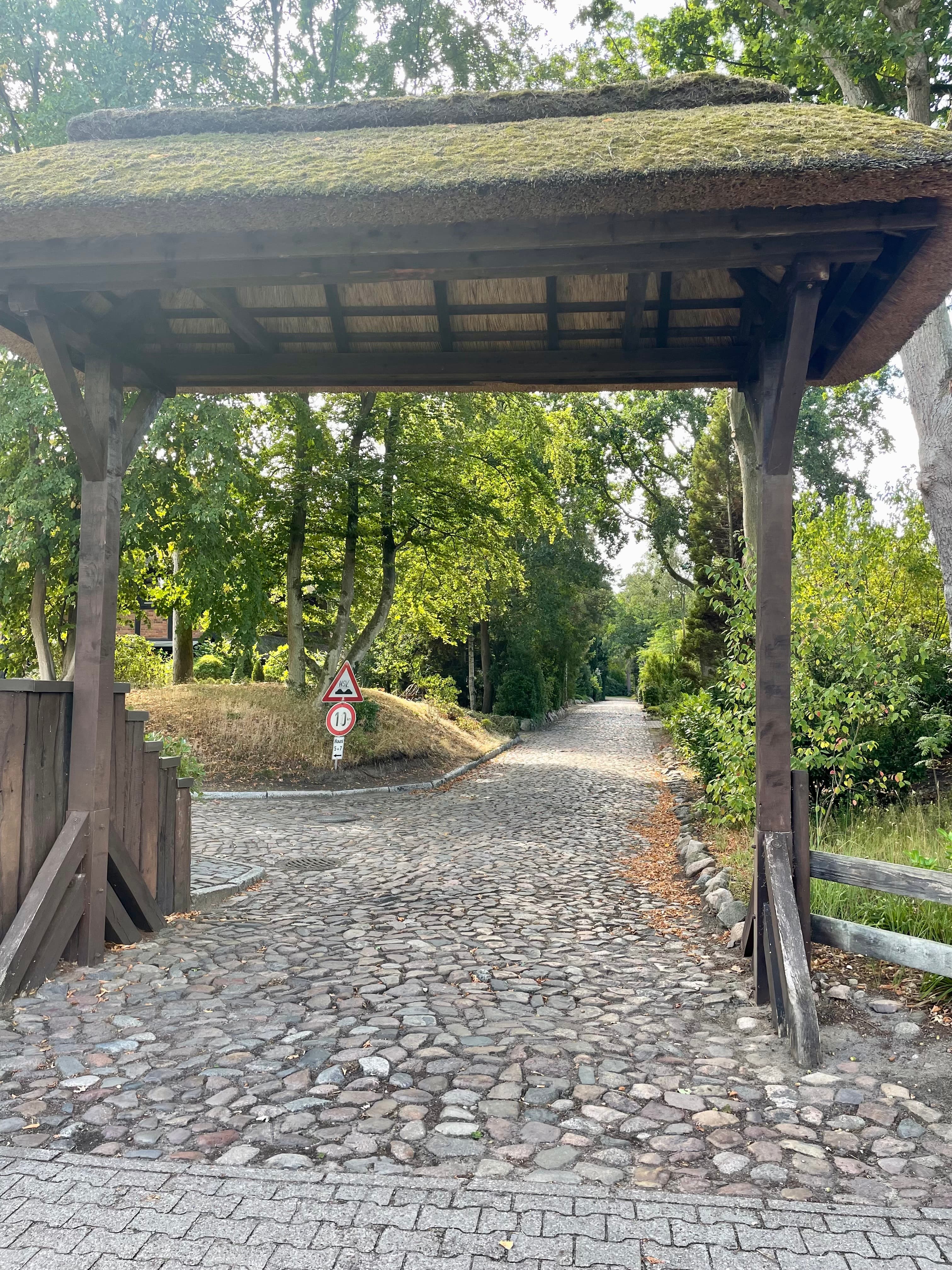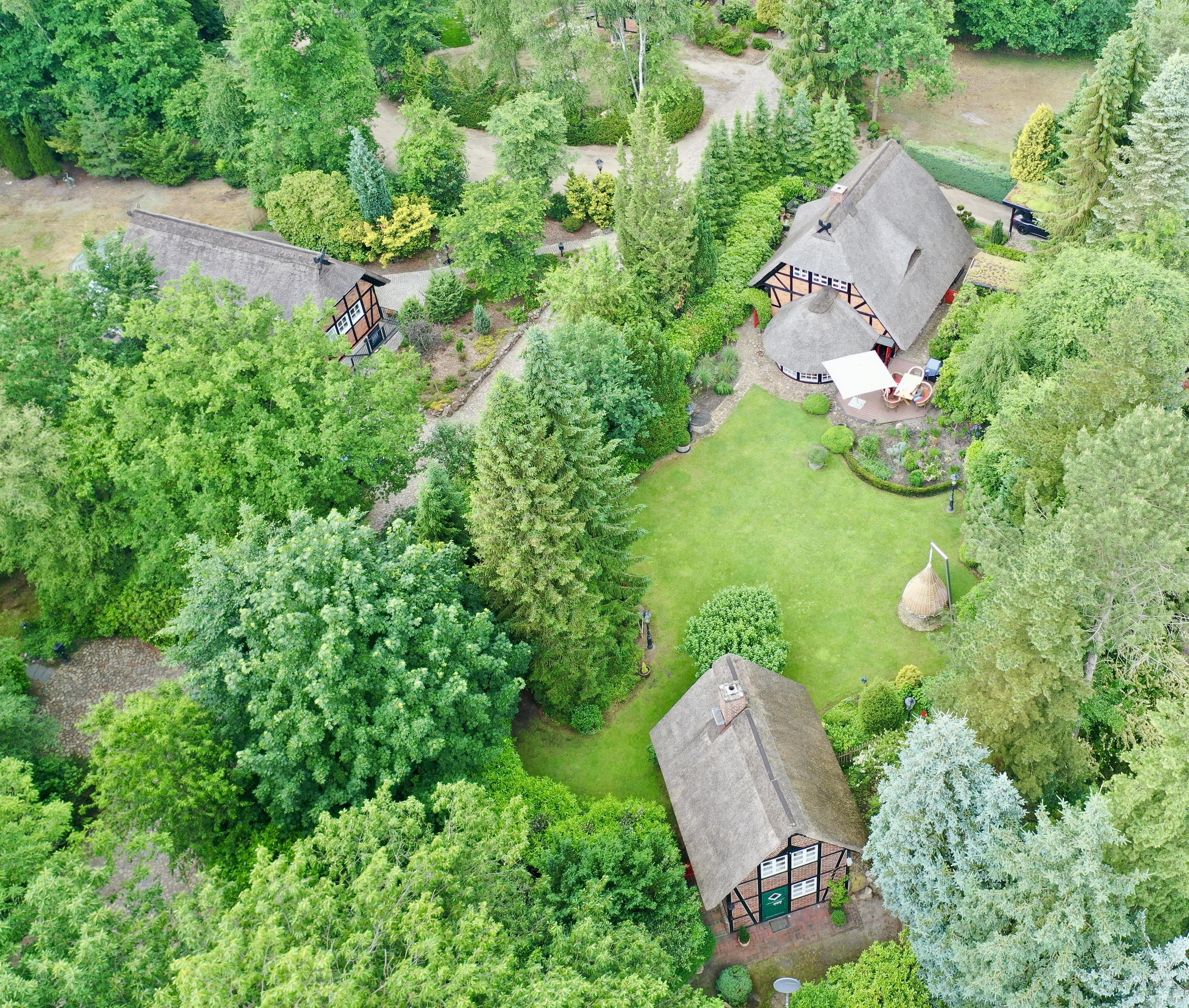 Vom Widukind aus in den Nibelungenweg, Einfahrt durch das Tor zum Heidedorf, auf dem Hauptweg bleiben, an der Nummer 3 vorbeifahren und bei der ersten Möglichkeit links abbiegen. Nach wenigen Metern befindet sich das Häuschen auf der linken Seite.