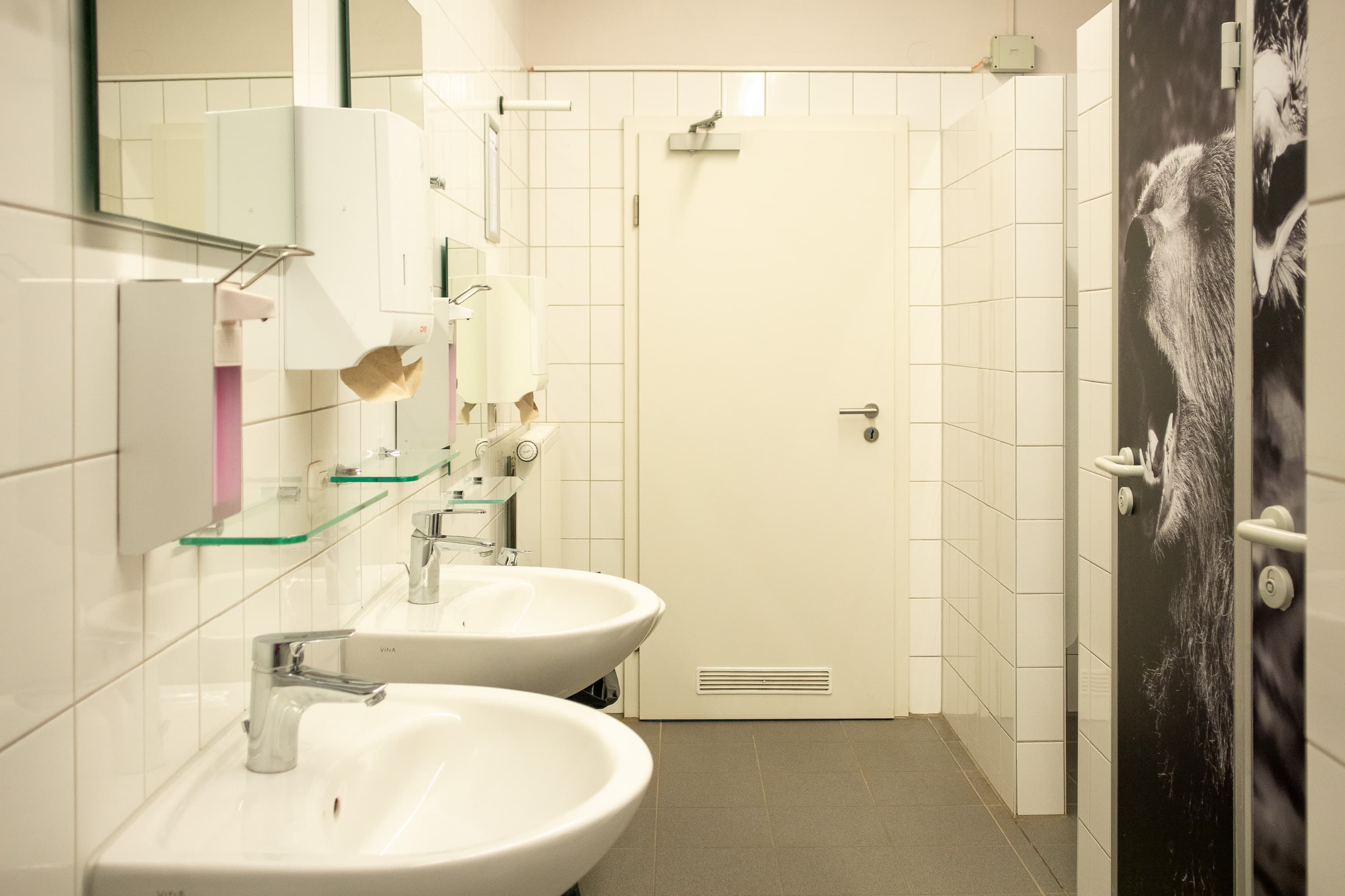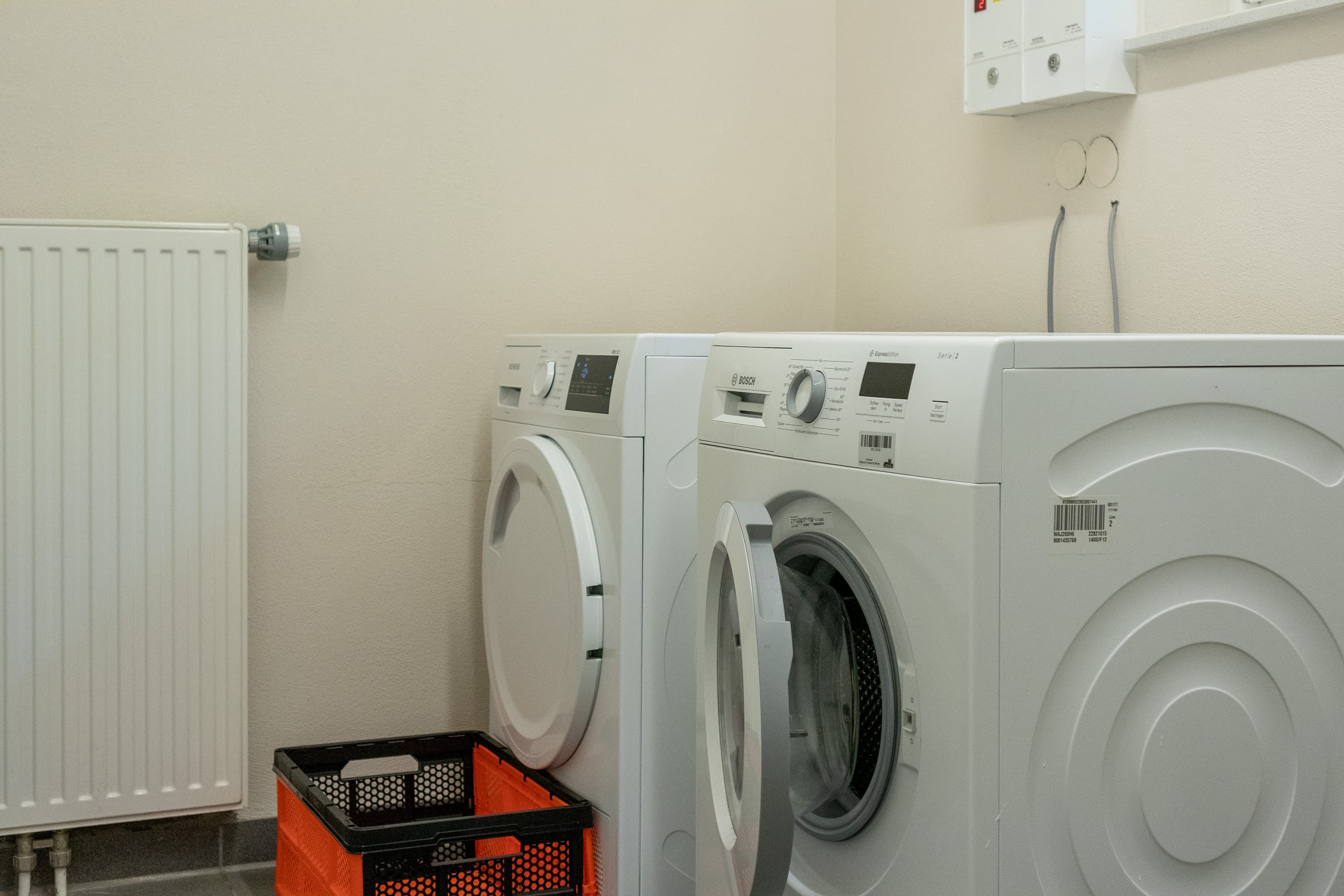 Ein Waschhaus mit sanitären Anlagen, auch rollstuhlgeeignet, einer Küche, einer Waschmaschine und einem Trockner sowie einem Aufenthaltstraum. Ver- und Entsorgestationen sowie Strom inklusive.