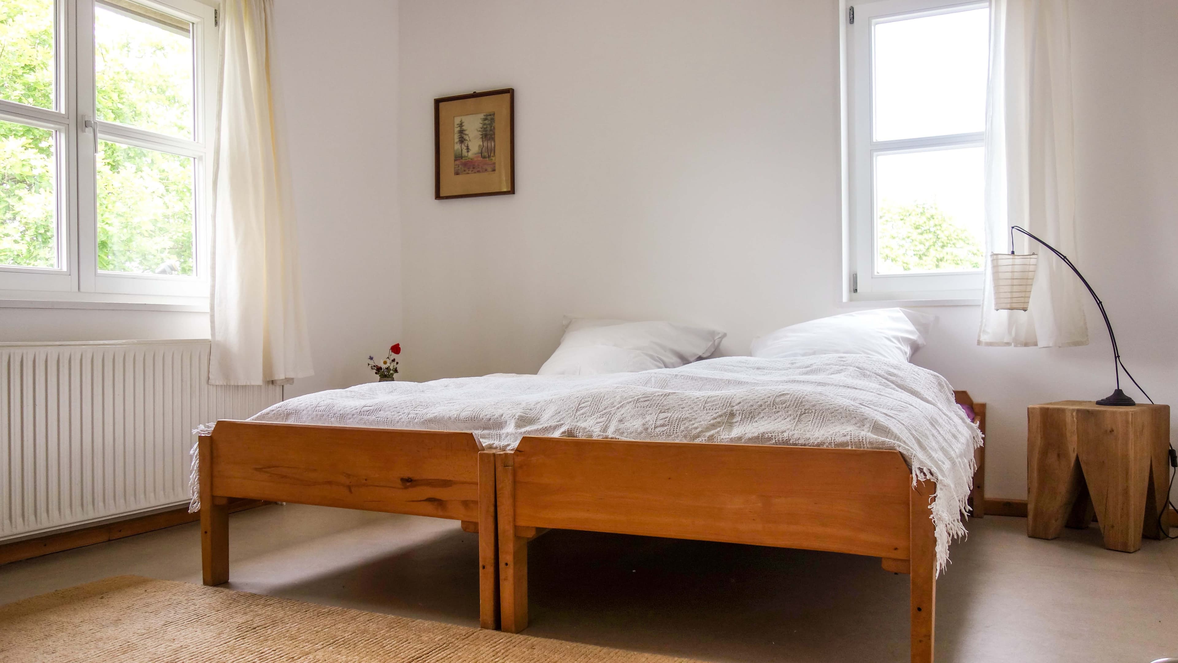 Die Zimmer sind schlicht und einfach. Auf Wunsch mit Bettwäsche. Im Badezimmer steht ein Fön zur Verfügung. Es gibt eine Wohnecke mit Wasserkocher und ein großes Bücherregal zum stöbern.