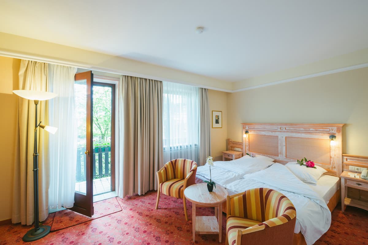 Alle Zimmer verfügen im Wohnbereich neben dem Bett über eine Sitz- oder Couchgarnitur, Telefon, Kabelfernseher mit Radio, Minibar, Hosenbügler und Schranksafe. Viele Zimmer - und alle Suiten - haben Balkon oder eine Terrasse, von der aus Sie einen traumhaften Blick auf die weite, vor Ihnen liegende Landschaft haben. Alle Badezimmer sind mit Wannenbad oder Duschkabine (teilweise mit beidem) und WC ausgestattet. Beheizbare Handtuchhalter - für die hochwertige kuschelige Frotteewäsche, wie auch die Bademäntel, Fön und Kosmetikspiegel gehören ebenfalls zur Standardeinrichtung.