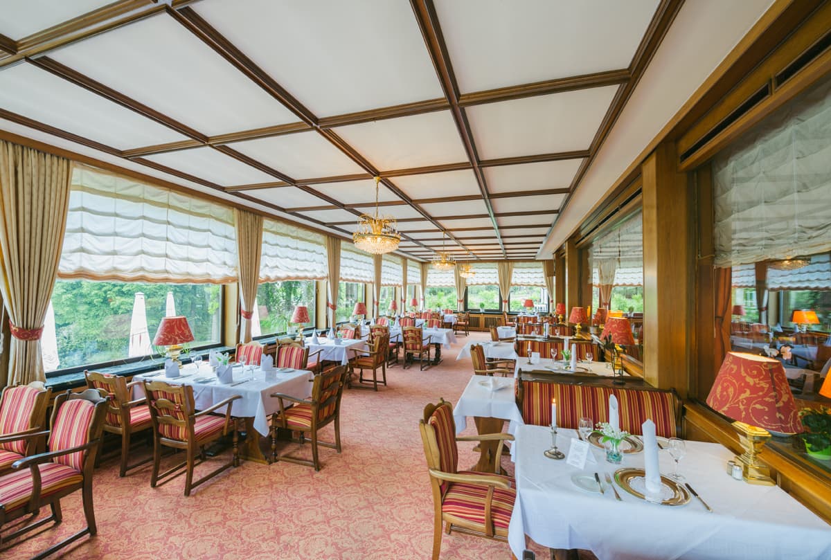 Unter schützenden Reetdächern im historischen Teil des Hauses erwartet Sie unser Panoramarestaurant. Genießen Sie atemberaubende Sonnenuntergänge in einer atemberaubenden Naturkulisse! Unser Panoramarestaurant bietet für ca. 90 Gäste ausreichend Platz in zwei separaten Wintergärten. In den Sommermonaten bieten wir Ihnen zusätzlich zwei Terrassen direkt im Grünen! Unter dem Motto „Genuss mit Aussicht“ verwöhnen Sie unser Küchenchef und sein Team mit regionalen Köstlichkeiten.