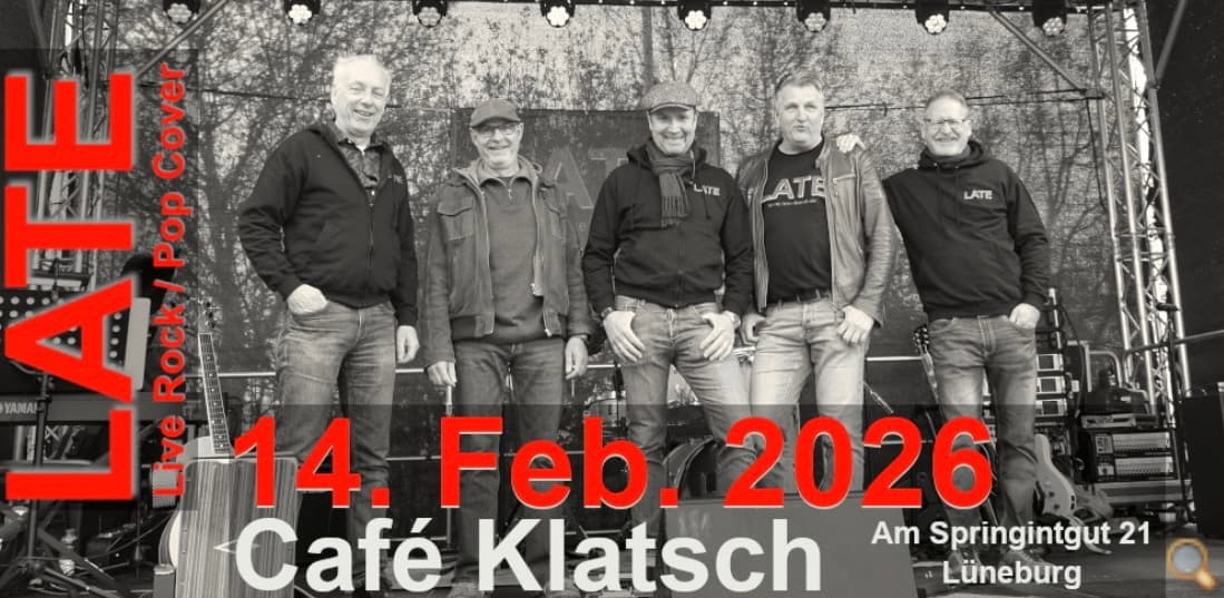 LüneburgDie 5 Lüneburger sind die Rock / Pop Cover Band „LATE“ und spielen ausgewählte Songs von bekannten Bands wie z. B. Green Day U 2 Pink Floyd Nirvana Selig Cold Play Jan Delay Tom Petty Bon Jovi Stiller Kravitz u.v.m. auf eigene Art die (fast.....) jeder Rock Fan kennt aber sonst kaum andere Cover Ba…