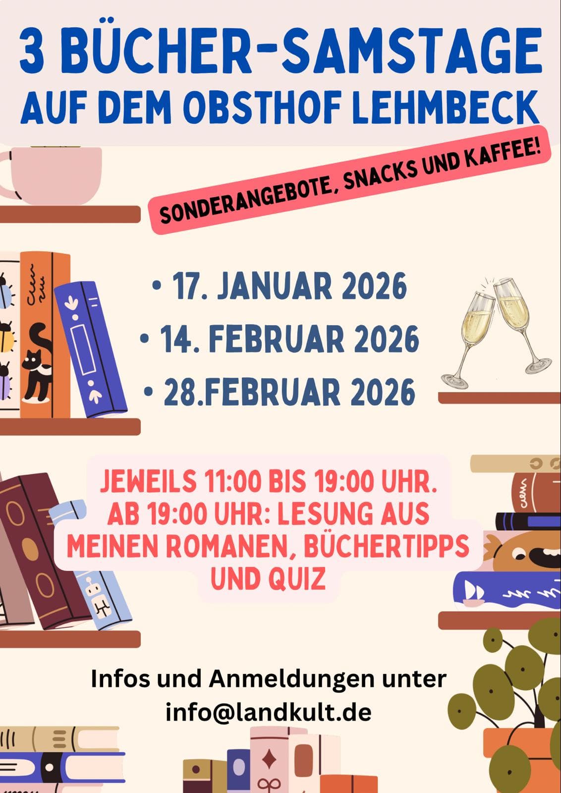 Winsen (Luhe)-3 Bücher-Samstage gibt es auf dem Obsthof Lehmbeck Infos und Anmeldungen unter info@landkult.de