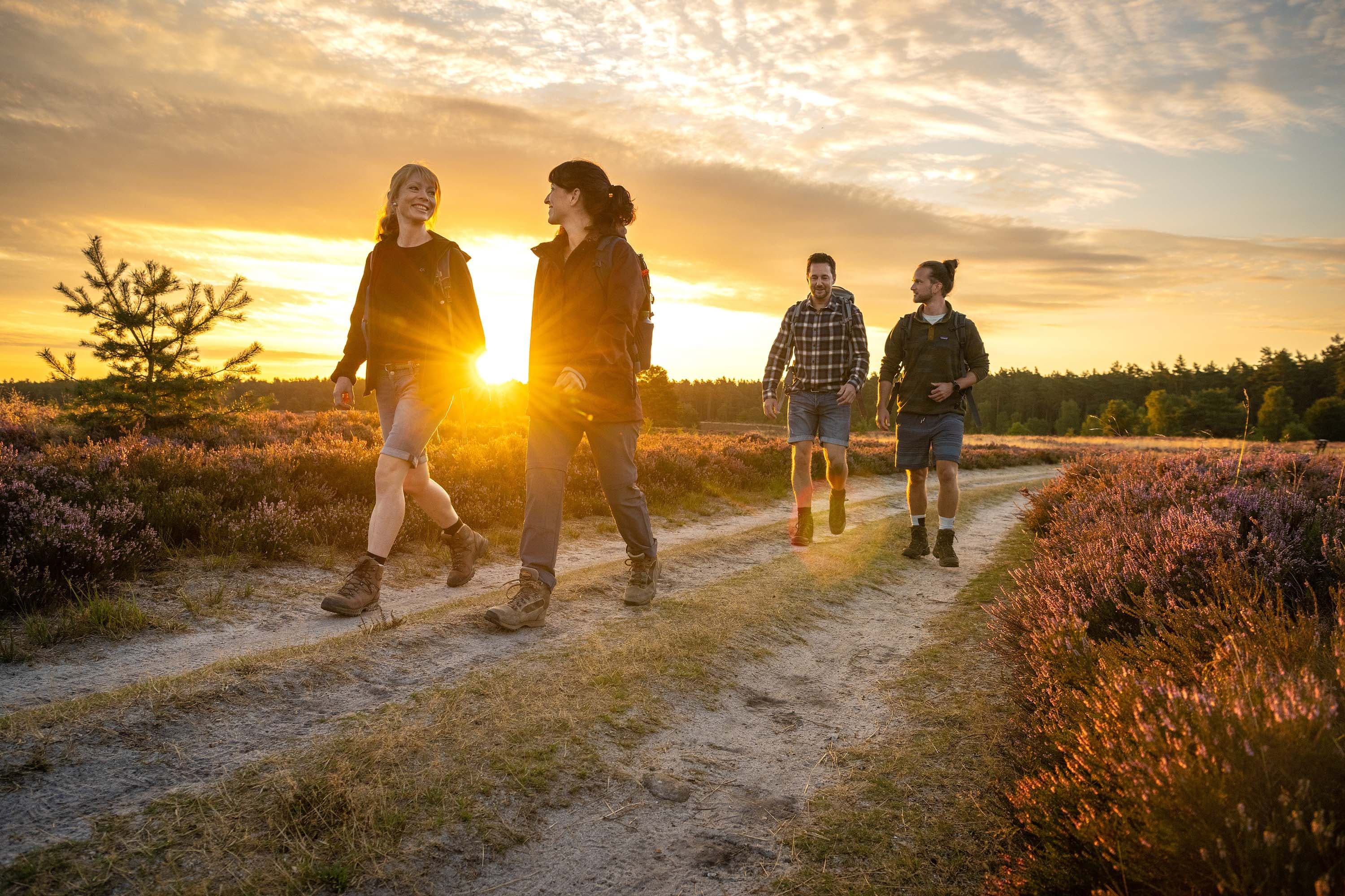 Herbstferien in Deutschland / Trendziel Lüneburger HeideDer Herbst gehört zu den beliebtesten Wanderzeiten in der Lüneburger Heide. An den Bäumen leuchten die Blätter, das sanfte Sonnenlicht wärmt die Wangen und die milde Luft streichelt das Gesicht. Kürzere Strecken und Zeit zum Innehalten sowie achtsames Wandern auf laubweichem Boden sprechen Naturgen…