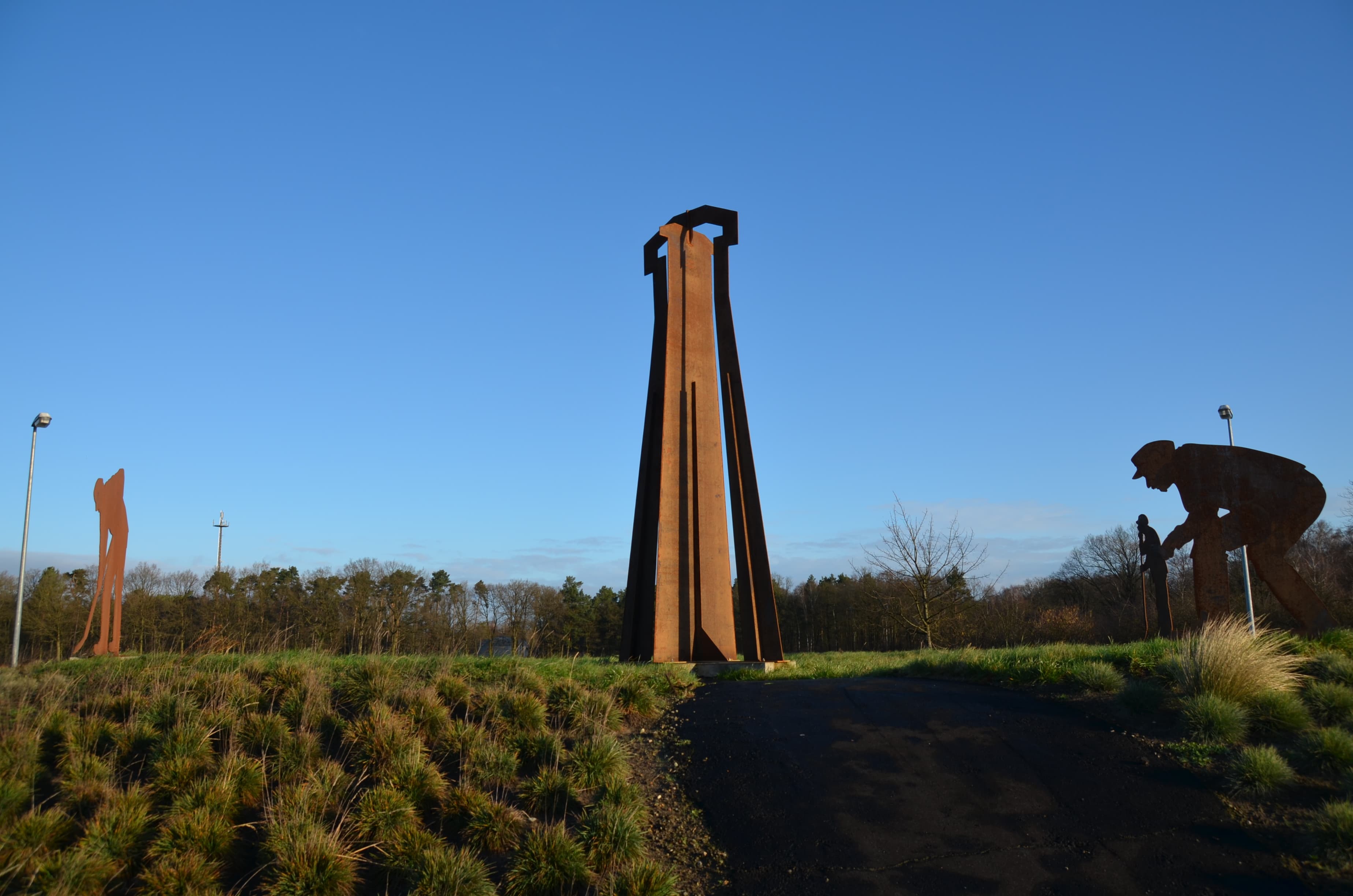 Mitten auf dem Kreisel an der Ortseinfahrt (B214) zur Gemeinde Wietze ziehen ein abstrakter Bohrturm aus Corten-Stahl und 3 Arbeiter-Figuren die Blicke auf sich. Wieso ein Bohrturm?... Hier in der Südheide?