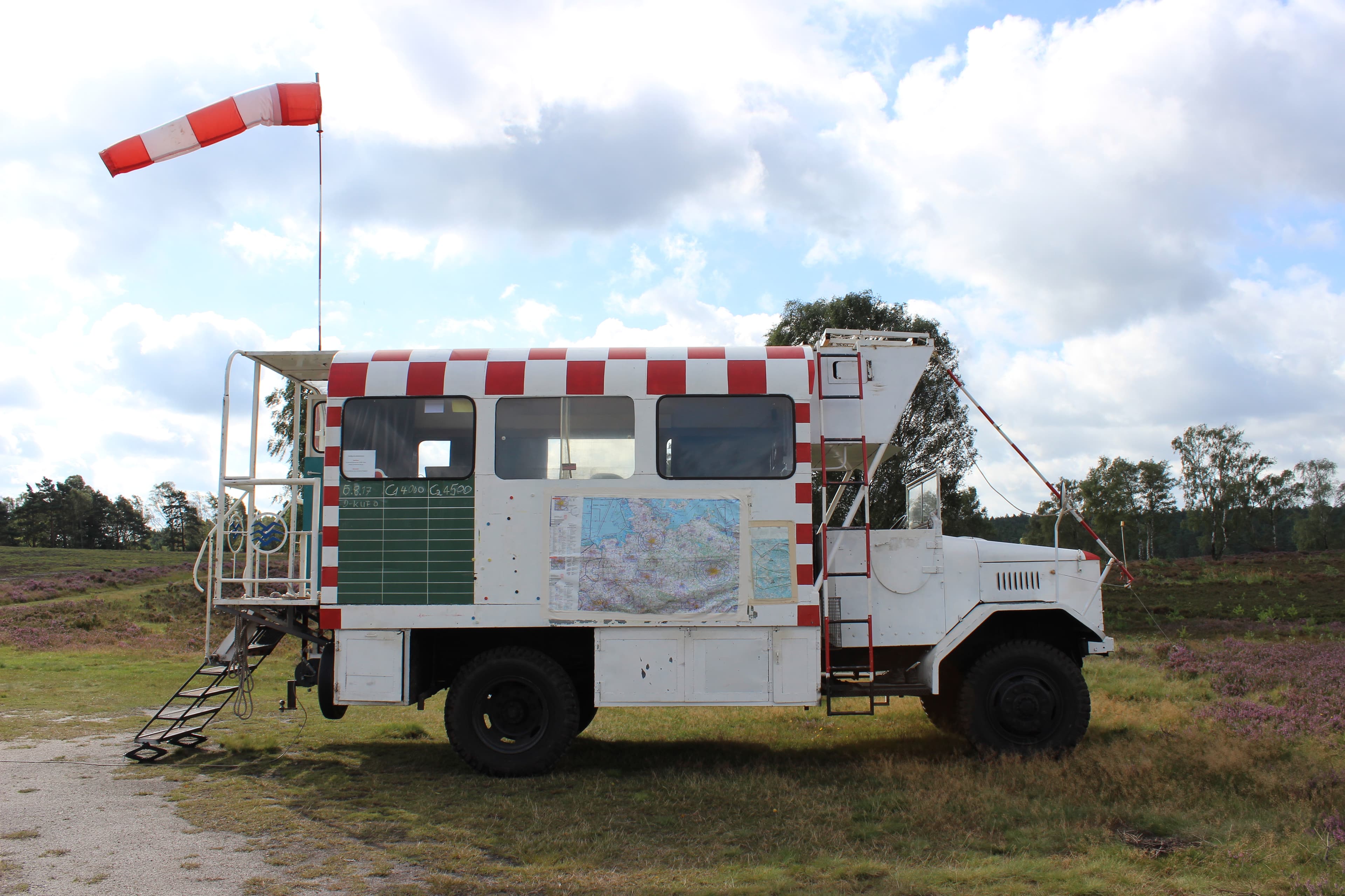 Ich war schon aufgeregt als ich mich am 20.08.17 auf den Segelflugplatz in der Fischbeker Heide begab. Segelfliegen wollt ich immer schon mal. In Fischbek soll dies möglich sein. In jüngeren Jahren bin ich gern mit dem Flugzeug in den Urlaub geflogen. Mit zunehmendem Alter bereitet mir das Fliegen aber immer auch ein mulmiges Gefühl. Wahrscheinlich denkt man mehr an mögliche Risiken. Der Pilot beruhigt mich. Er fliege schon seit Jahren und es sei ihm nie etwas passiert. Notfalls gibt es auch einen Fallschirm. Das Segelflugzeug wird zunächst über einen breiten Sandweg – rechts und links sehe ich leuchtend lila blühende Heideflächen - auf den Startplatz gezogen. Dies erledigt ein alter LKW aus dem Jahre 1938. Ich folge dem Wagen zu Fuß und genieße die herrliche Natur auf dem ca. 1 km langen Anstieg.