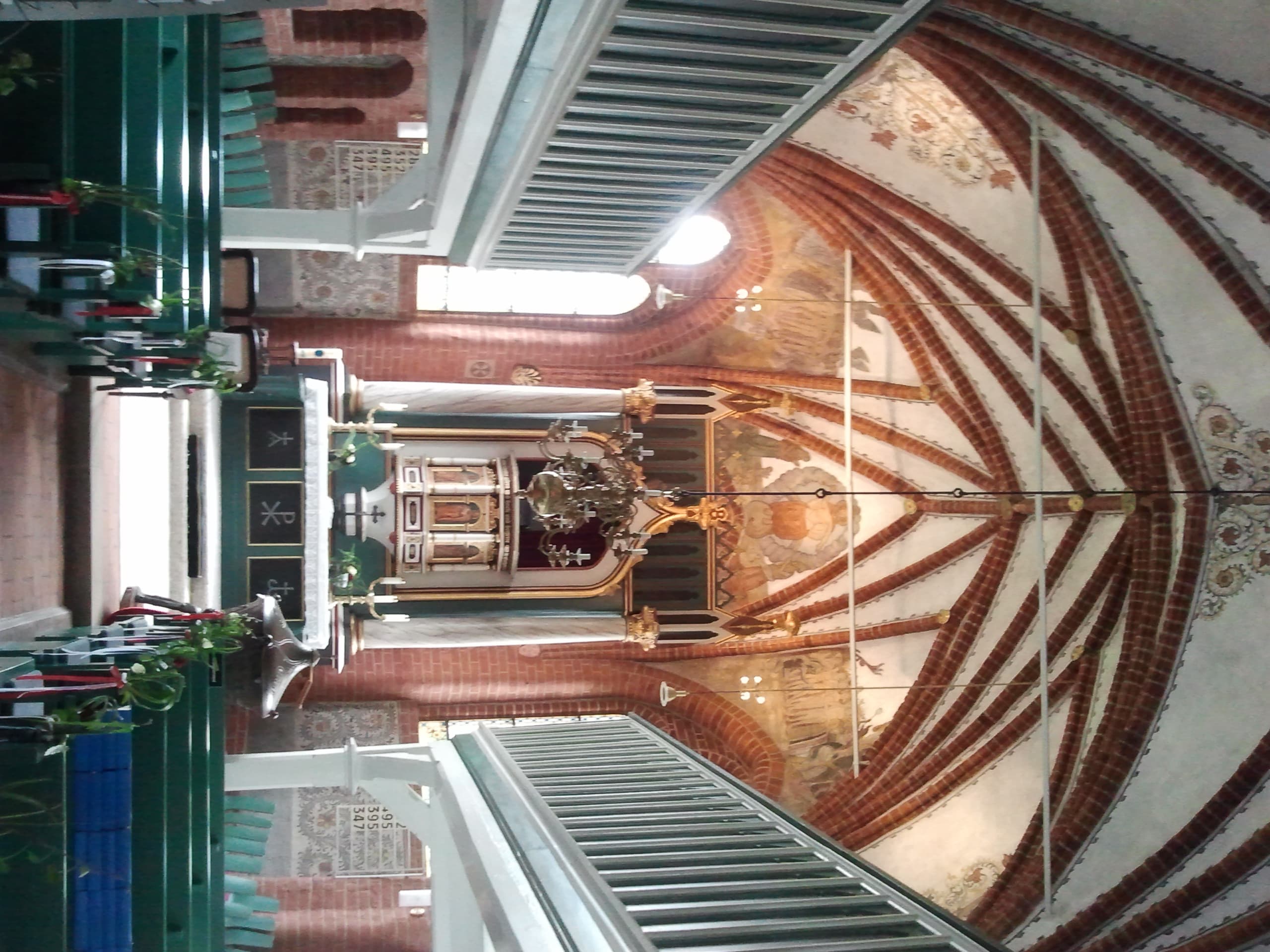 Fast schräg gegenüber liegt die St. Laurentius Kirche erbaut 1217. Eine kleine Kirche mit besonderem Charme. Gotische Ausmalung im Chorraum (Jüngstes Gericht), Bronzetaufe von 1473. Besonders entzückend ist die Spielecke für Kinder.