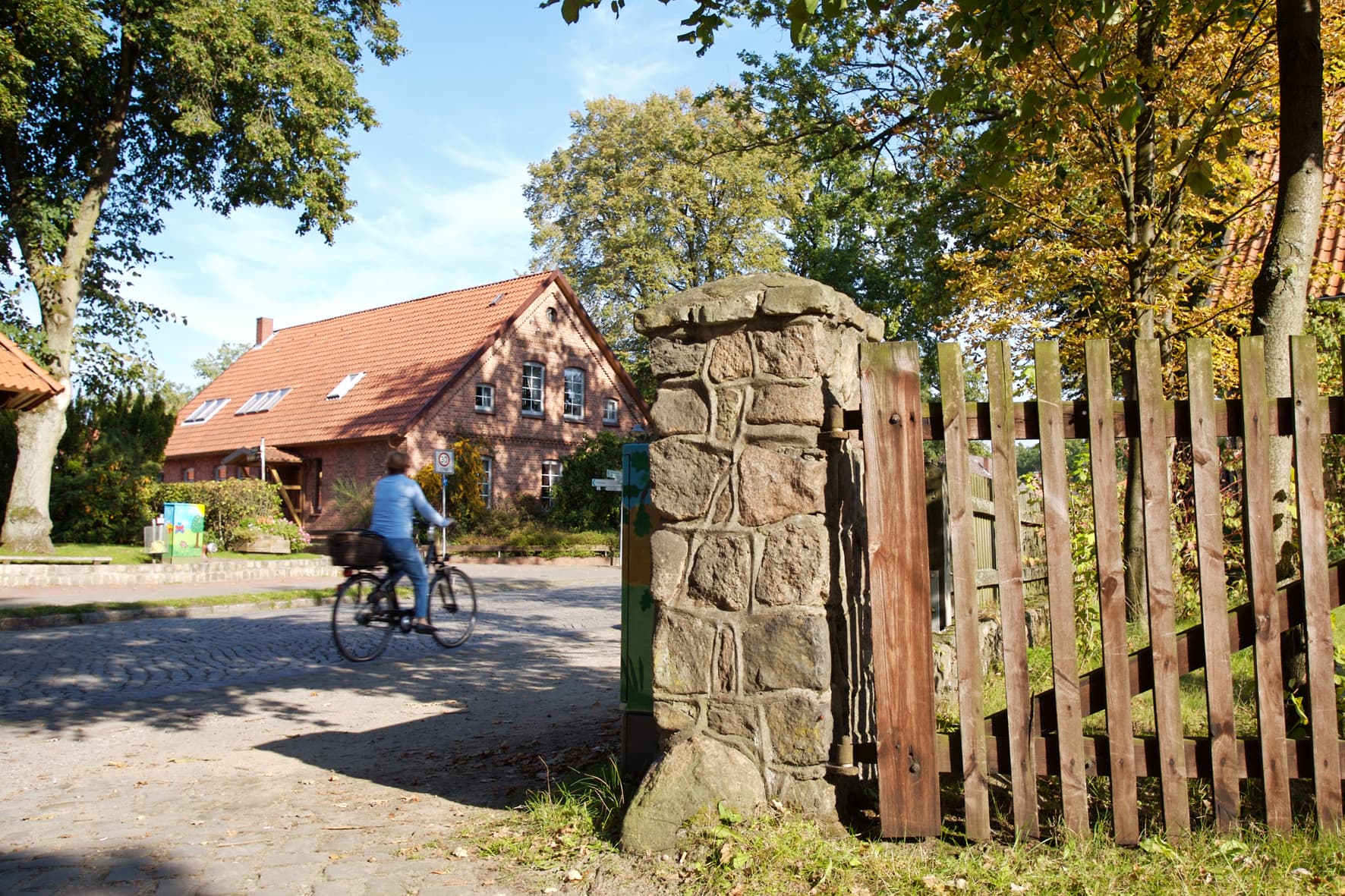 Schon die Einfahrt über das Kopfsteinpflaster in das romantisch verträumte Dorf hat mich fasziniert. Ein ganz besonderen Charme strahlt dieser schöne Ort aus. Ich parkte mein Auto auf dem Parkplatz an der Mühle. Als erstes ging ich in die Touristinformation die in der Mühle ist und habe mir Informationsmaterial geben lassen. Von der Mühle aus hat man eine gute Einstiegsmöglichkeiten in den Fluss-Wald-Erlebnispfad der sich zwischen den Orten Hermannsburg, Müden (Örtze) und Poitzen erstreckt. Die insgesamt etwa 20 km des Pfades sind in mehrere Abschnitte unterteilt, die gut zu wandern sind. Ich bin eine Teilstrecke bis zur Ole Müllern Schün in einer guten Stunde gewandert und habe dort den Ausstieg genutzt.