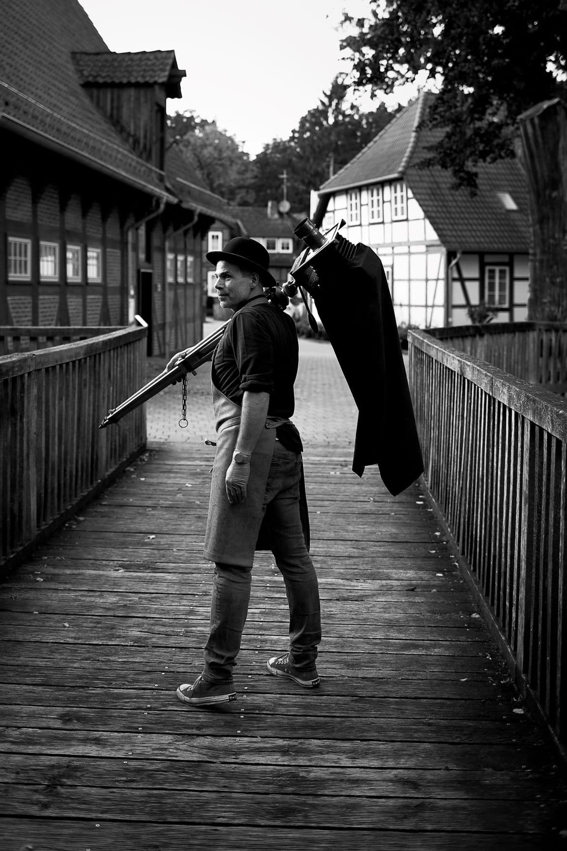 Hier bewahre ich ein ganz besonderes Handwerk und biete euch die Möglichkeit Teil eines magischen Moments zu werden. Der Photographie aus dem Jahre 1851. Portraits auf einer sogenannten Nassplatte, einer Platte aus Glas oder Alu mit einer flüssigen Kollodiumsalzschicht überzogen und im Silberbad sensibilisiert. Entwickelt von S.F. Archer.