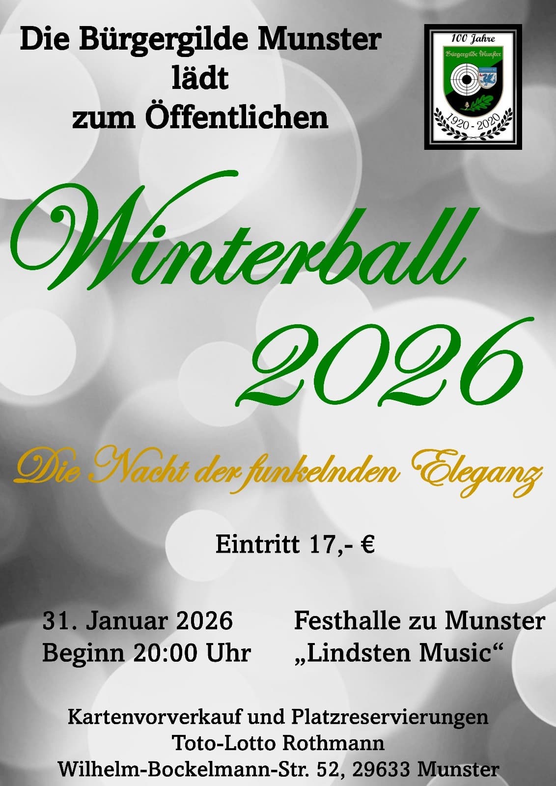 Munster-Am 31. Januar 2026 ist es wieder soweit. Mit dem öffentlichen Winterball der Bürgergilde Munster e.V. startet um 20:00 Uhr die neue Ballsaison.