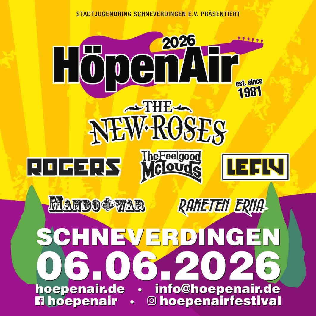 SchneverdingenAb demWie im vergangenen Jahr wird eine Band für die ganze Familie das HöpenAir Festival eröffnen. RAKETEN ERNA landet im Höpental. DAS Kinderrock-Trio aus Berlin-Kreuzberg, stellt unter Beweis, was die kesse Erna für ein Genre-Spektrum in petto hat. Auf ihrem 5. Album „ELECTRIC KINDIELAND“, das gerade e…