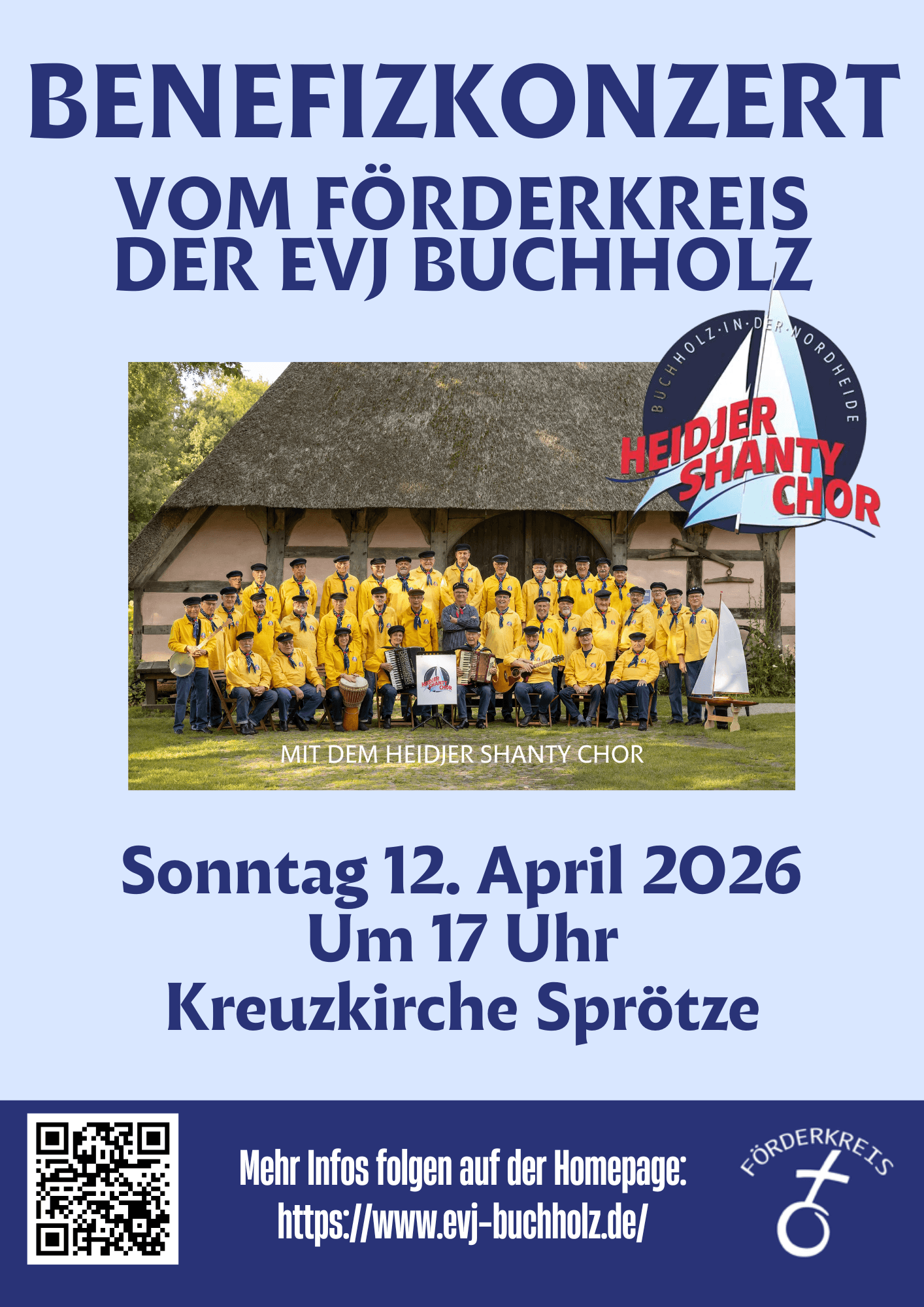 Buchholz in der Nordheide-Am Sonntag, den 12. April um 17 Uhr singt der Heidjer Shanty Chor in der Kreuzkirche Sprötze ein Benefizkonzert zugunsten des Förderkreises der Ev. Jugend in der Nachbarschaft Buchholz.